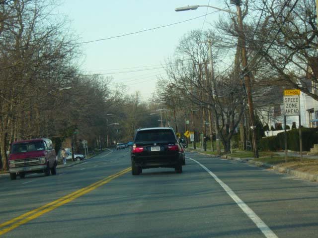 These pictures show Pine Hollow Road in East Norwich as it appeared in 2003. The first traffic light and most of the signs shown have since been replaced.