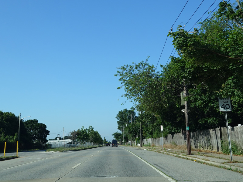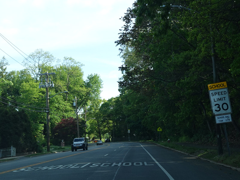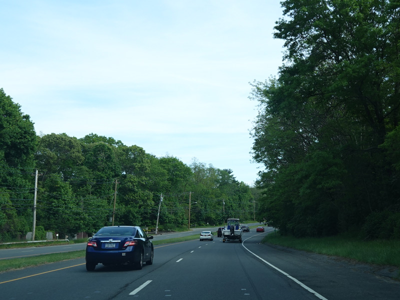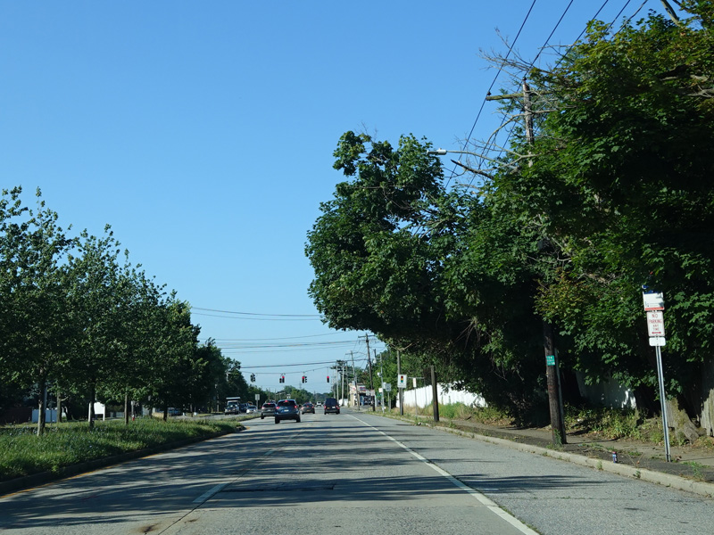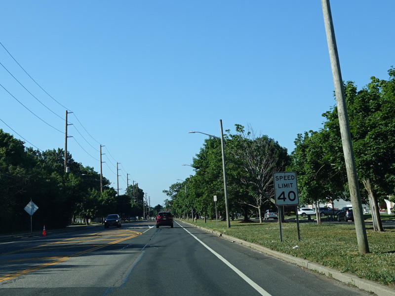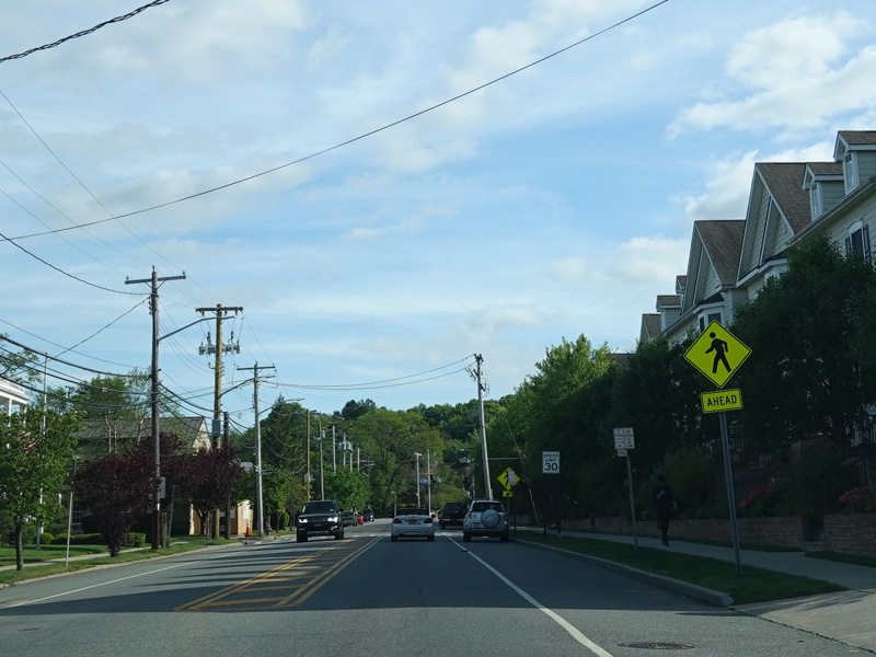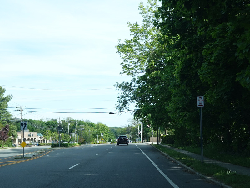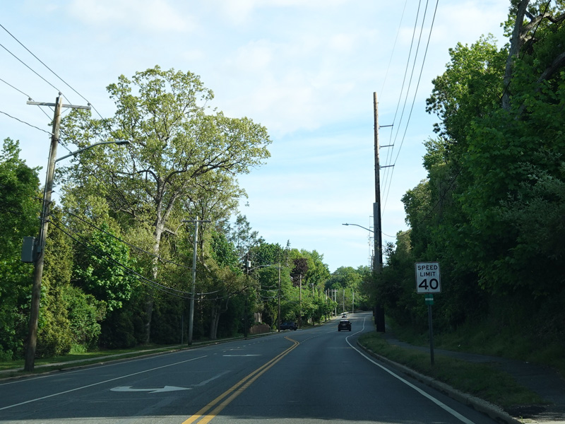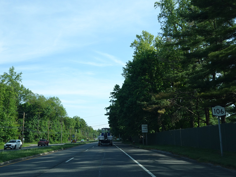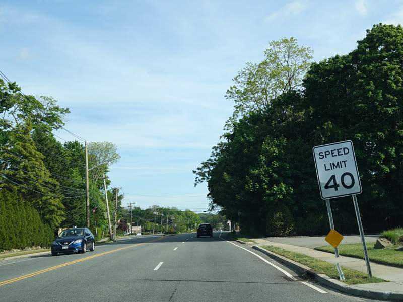 In East Norwich, NY 106 widens to become a four-lane divided road. Here, it is called Jericho-Oyster Bay Road.
