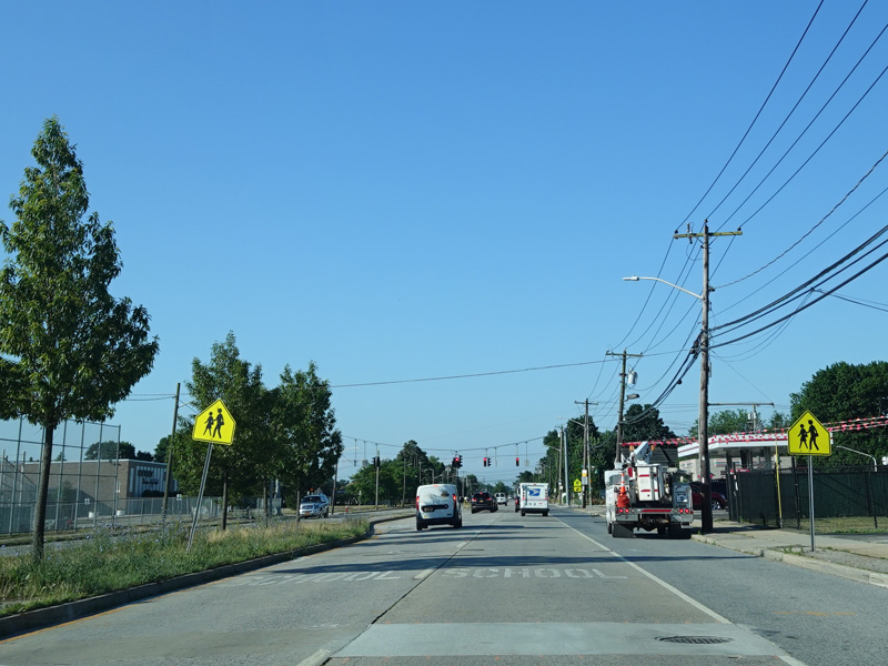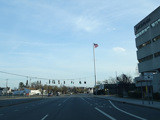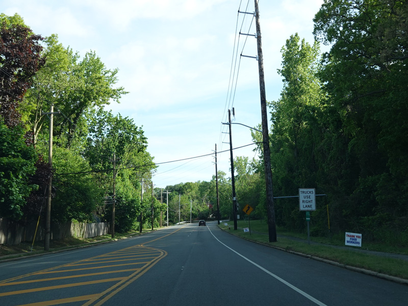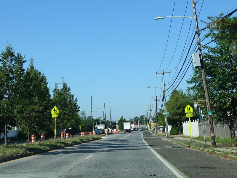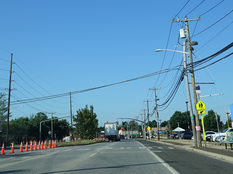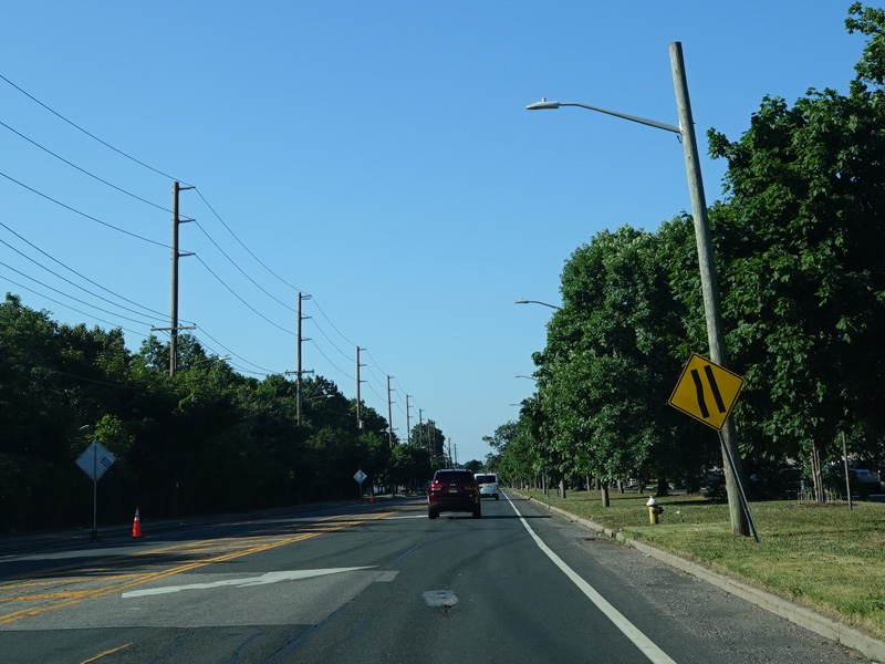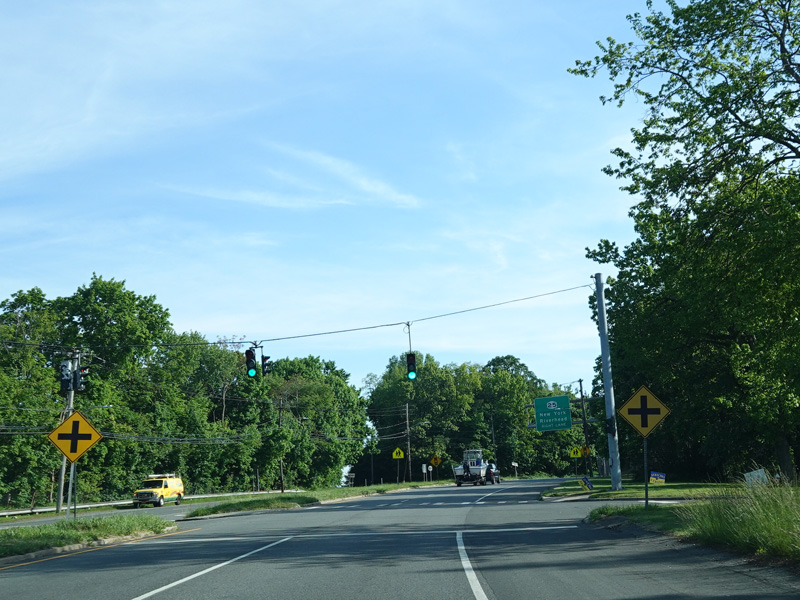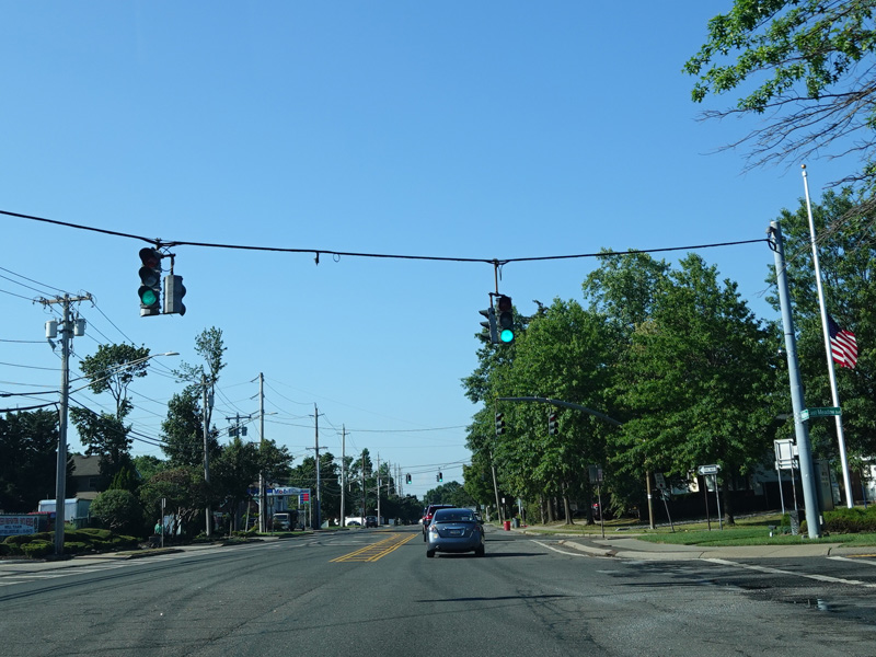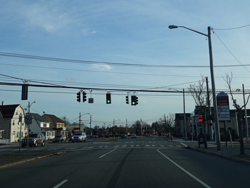 Newbridge Road widens to four lanes. There is a traffic light at North Jerusalem Road (CR 181). Turn left to go east or right to go west.