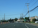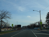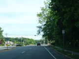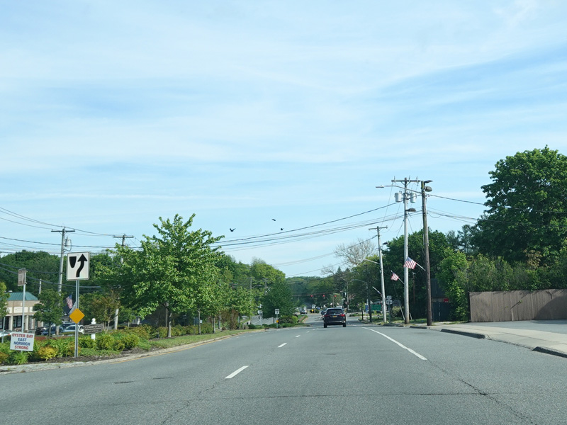 Jericho-Oyster Bay Road runs southwest toward Jericho as a four-lane divided road.