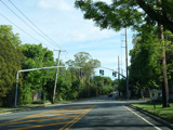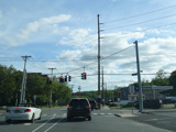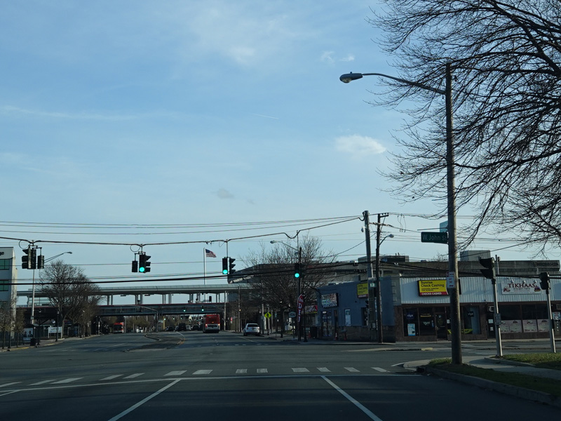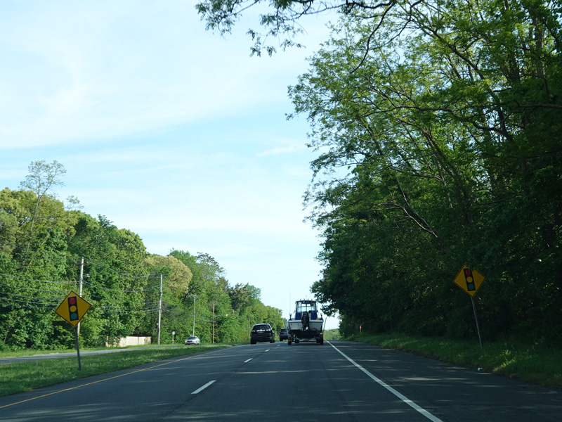 There is a traffic light at West John Street (CR 12). Turn left to go east or right to go west.
