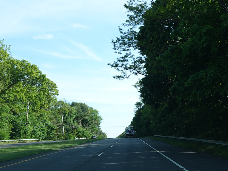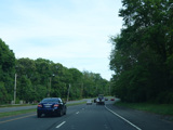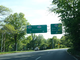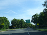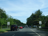 Newbridge Road passes over the Wantagh Parkway, but there is no interchange. Immediately after the overpass, Old Westbury Road begins on the right at a traffic light.