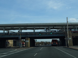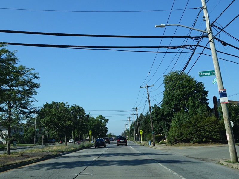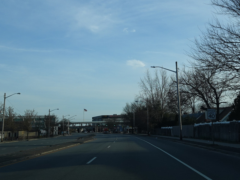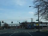 Newbridge Road passes under the Main Line of the Long Island Rail Road at the Hicksville train station.