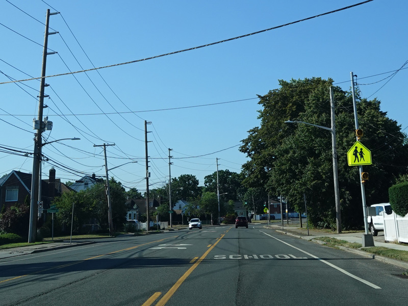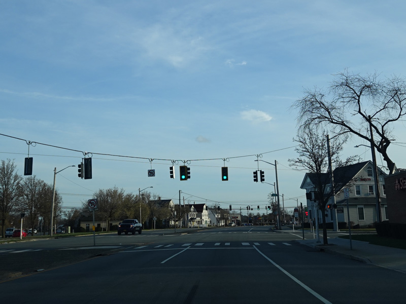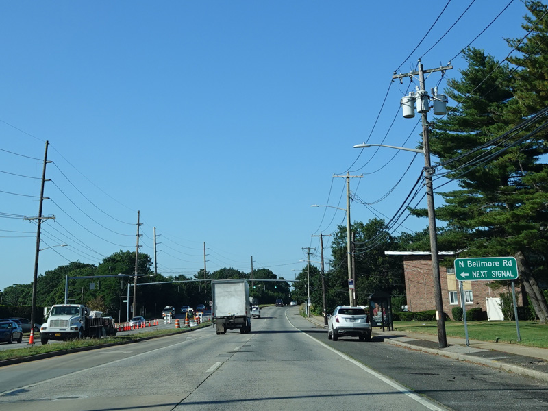 There are traffic lights at Carnation Road, Salisbury Park Drive, and North Bellmore Road.