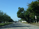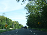 The road widens to three lanes, two for southbound traffic and one for northbound traffic.
