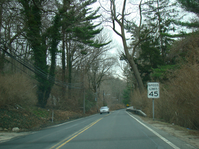 Harbor Road ends at this traffic light at Woodbury Road. Turn left to go east on Suffolk CR 11. Turn right to go west on Nassau CR 12.