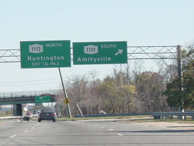 These signs used to mark the cloverleaf interchange with NY 110. They have all been replaced.