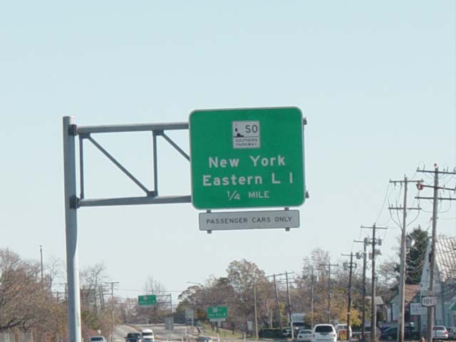 This sign used to mark the interchange with Sunrise Highway (NY 27). It has been replaced.