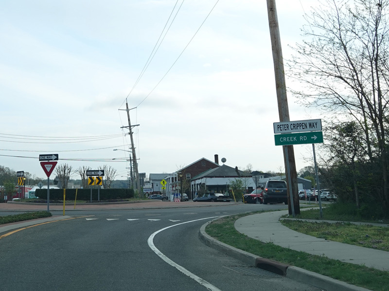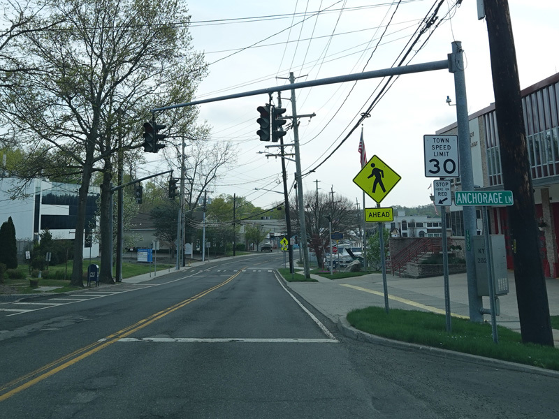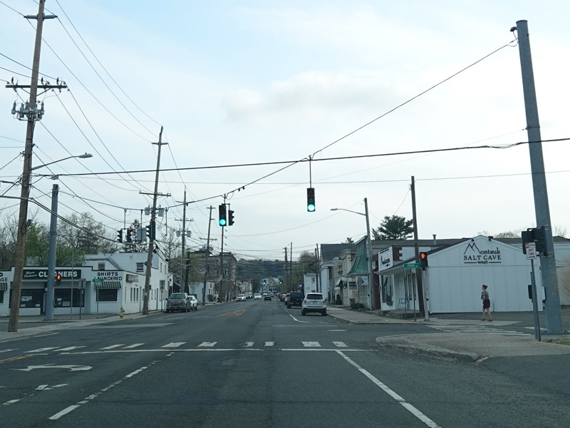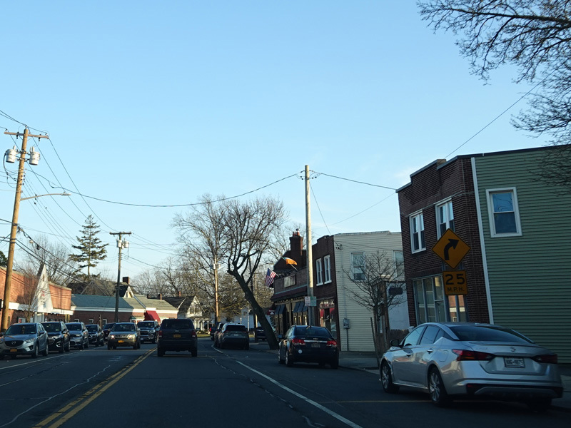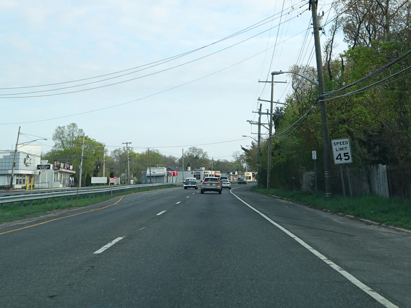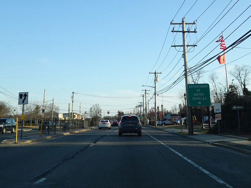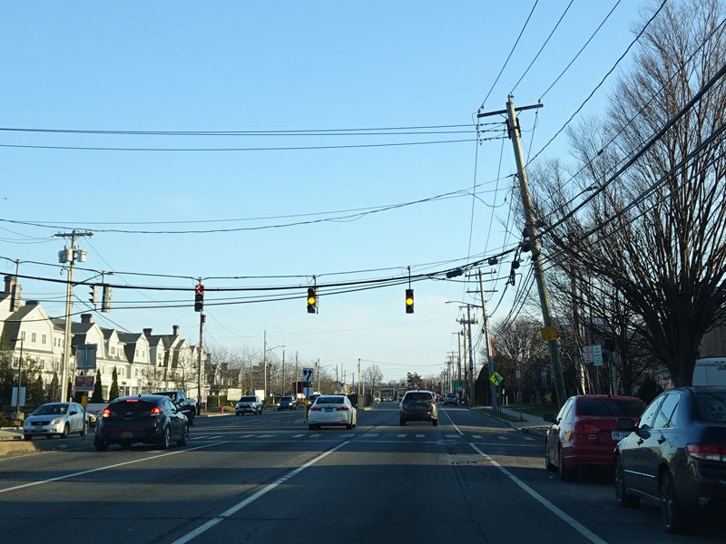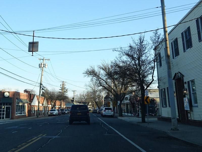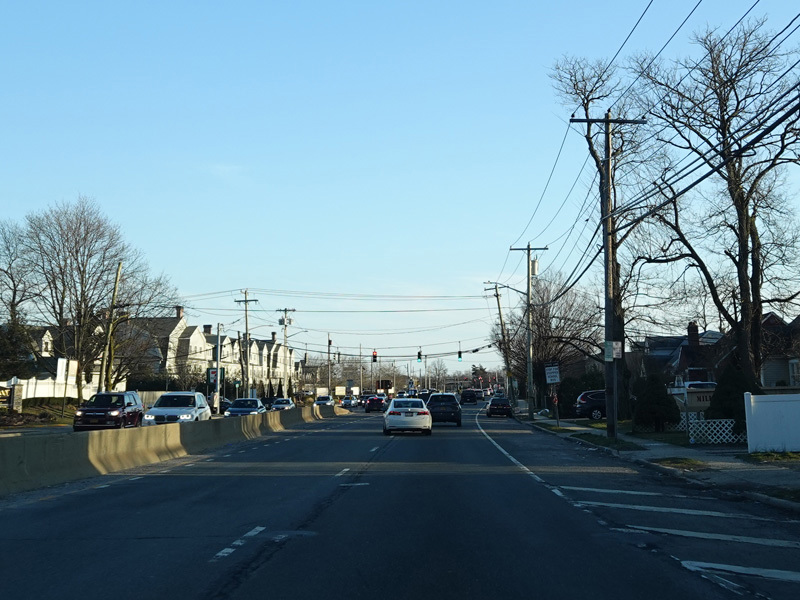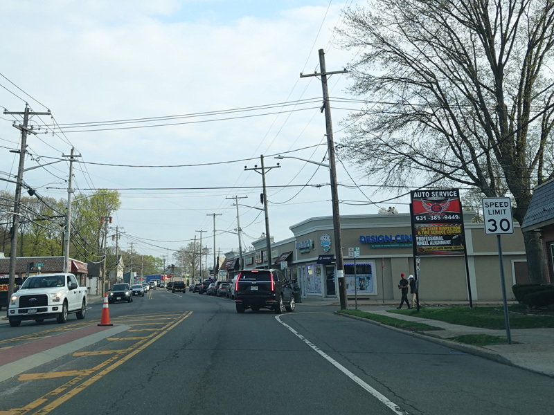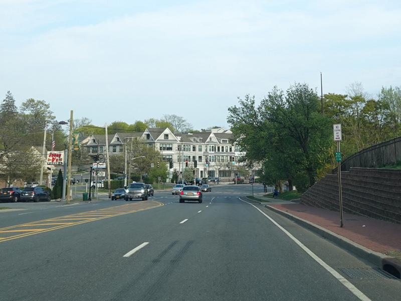 New York Avenue is formed by the merger of East Shore Road and Youngs Hill Road in Huntington. It runs south as a two-lane undivided road.