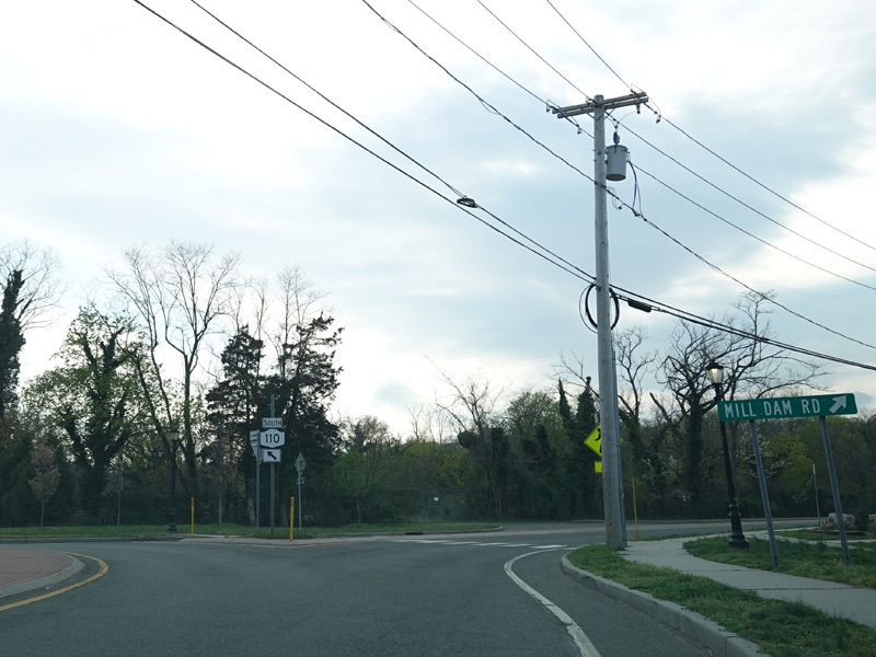 There is a pair of roundabouts at Mill Dam Road and Park Avenue, which were part of CR 35 until 2022. The northern portion of the county route has been decommissioned, and they are now unnumbered town roads. There is also access to Grist Mill Lane and Creek Road.