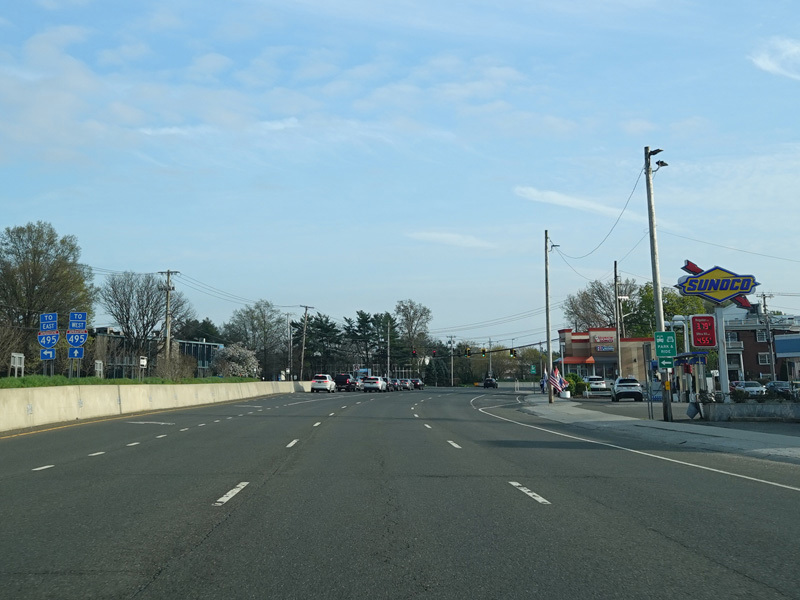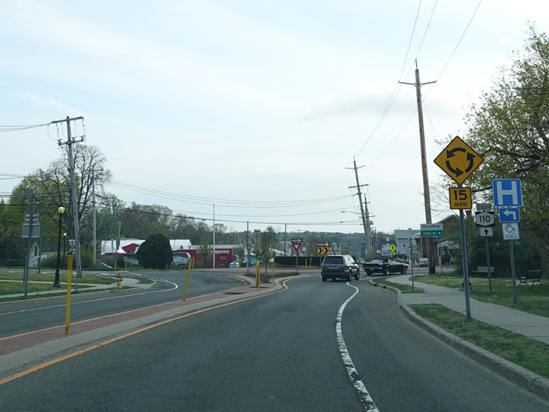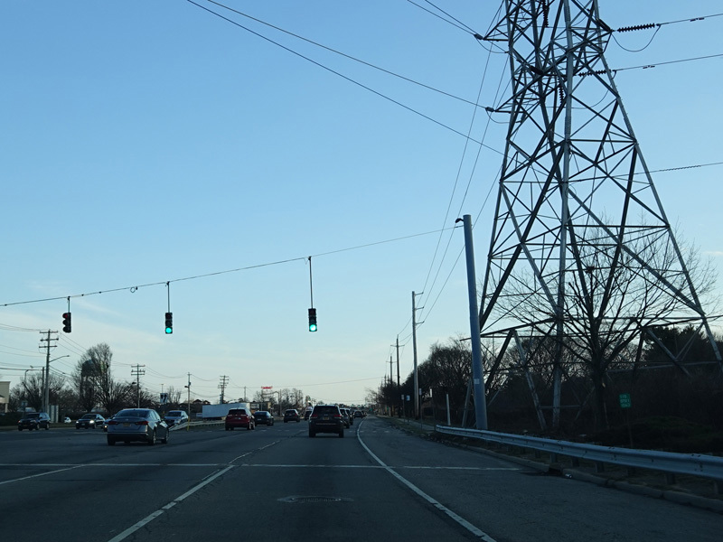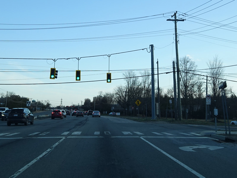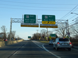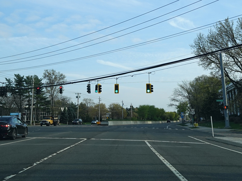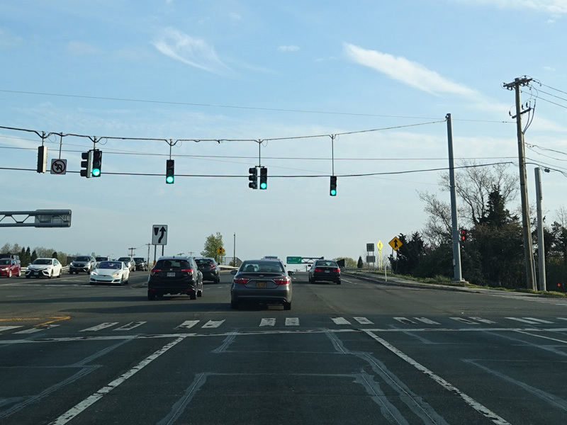 There is a traffic light at Pulaski Road (CR 11). Turn left to go east or right to go west.