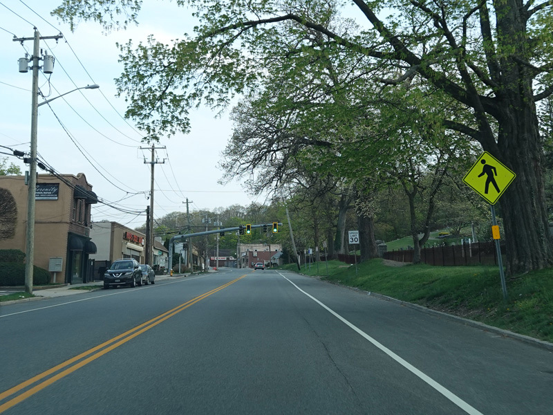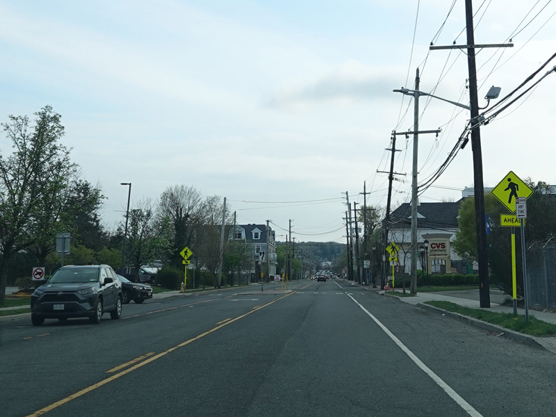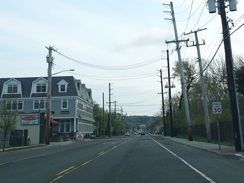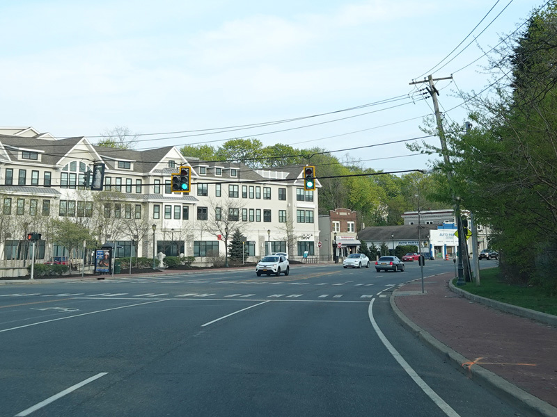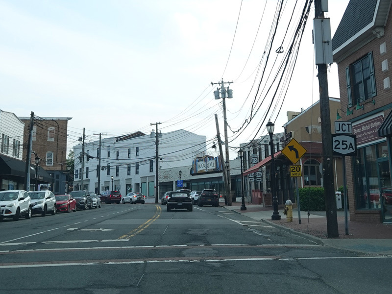 High Street (CR 92) begins on the right at a traffic light. There is no signage giving the route number.