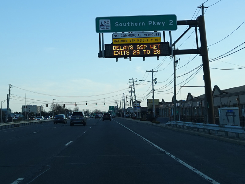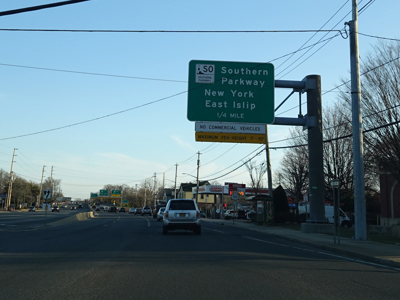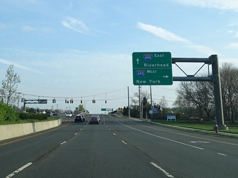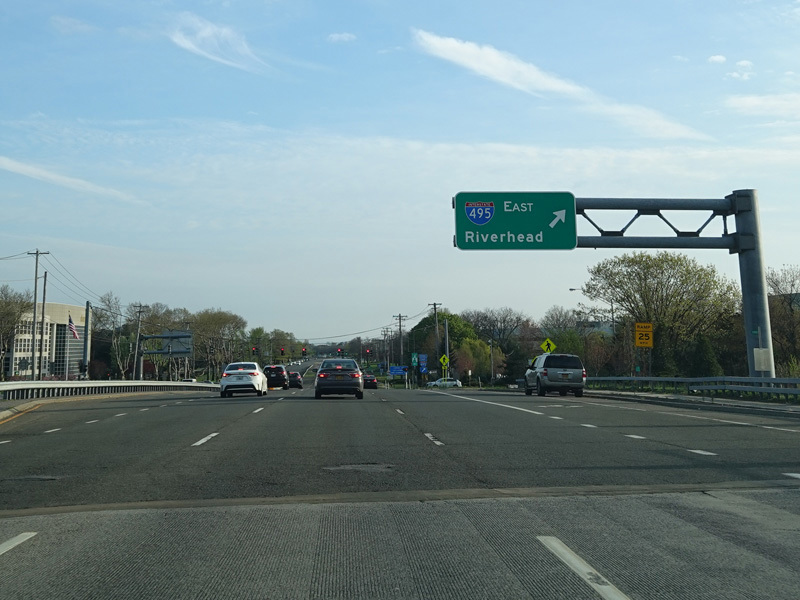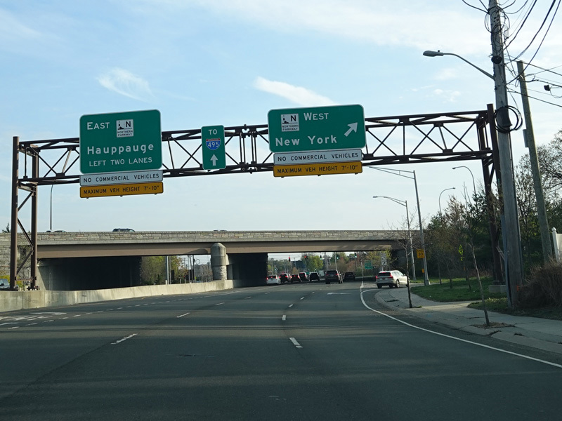 There is advance signage for the upcoming interchange with the Northern Parkway and the Long Island Expressway (I-495).