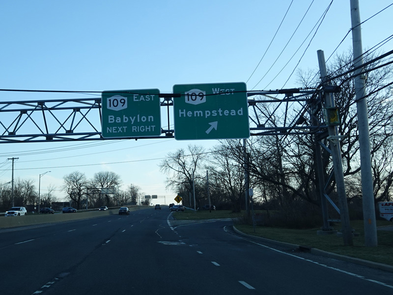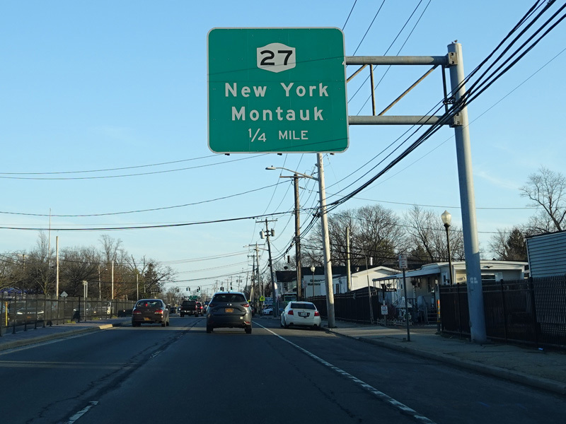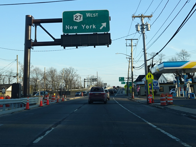 There is a grade-separated interchange with Sunrise Highway (NY 27).