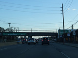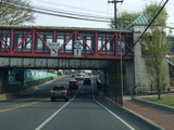 Broad Hollow Road passes under the Main Line of the Long Island Rail Road. Immediately thereafter, there is a traffic light at Conklin Street (NY 24).