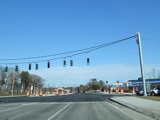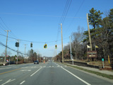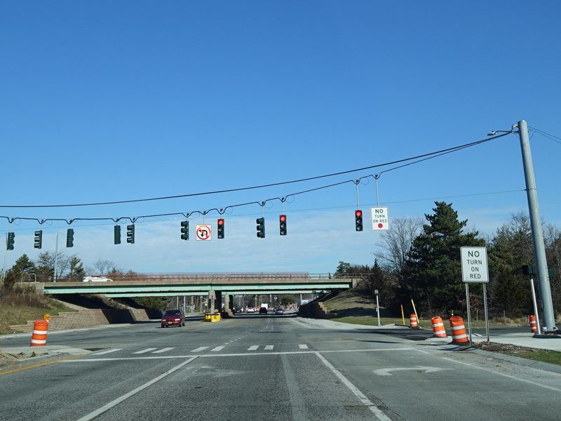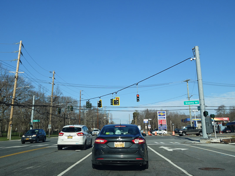 There is a traffic light at Skips Road, which extends a couple of blocks east to Mill Road.