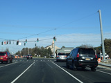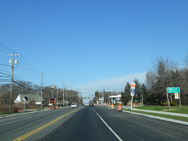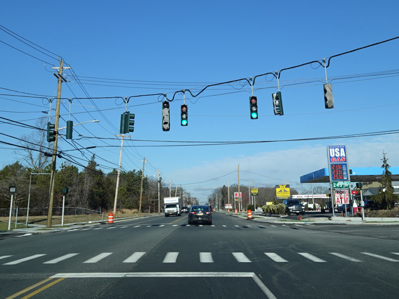 There is a traffic light at Horseblock Road (CR 16). Turn right to go east or left to go west.