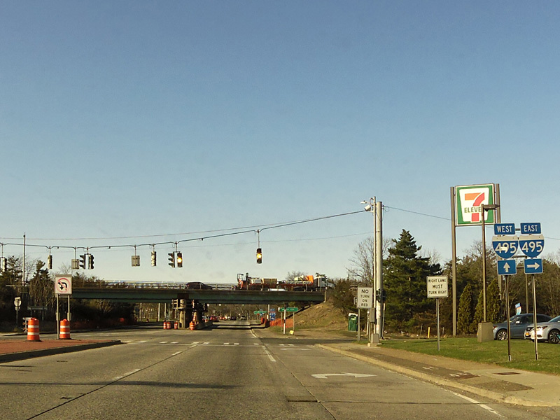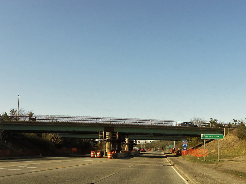 These pictures show NY 112 at the interchange with the Long Island Expressway (I-495) and the traffic light at Horseblock Road (CR 16) as it appeared during an earlier stage of the reconstruction. Most of the signs shown have since been removed.