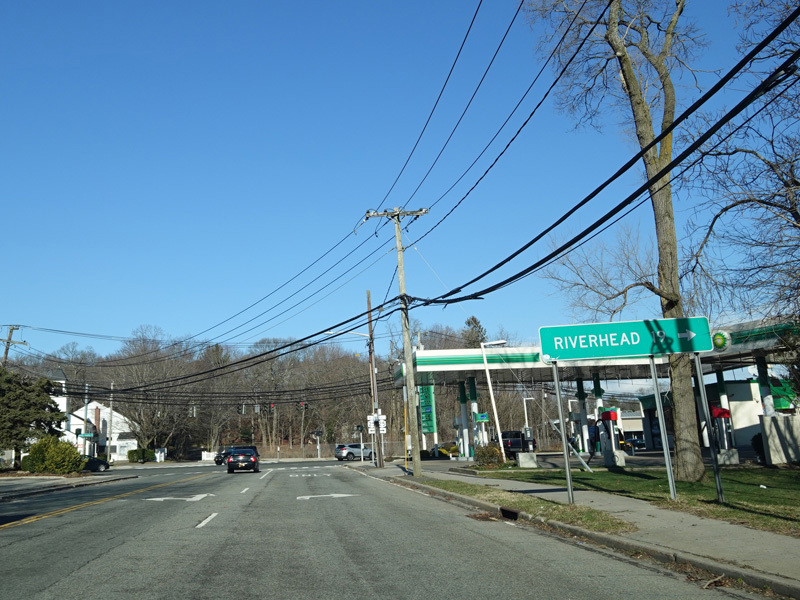 A short connector roadway leads from NY 112 to a traffic light at Middle Country Road (NY 25). Turn right to go east or left to go west.
