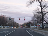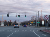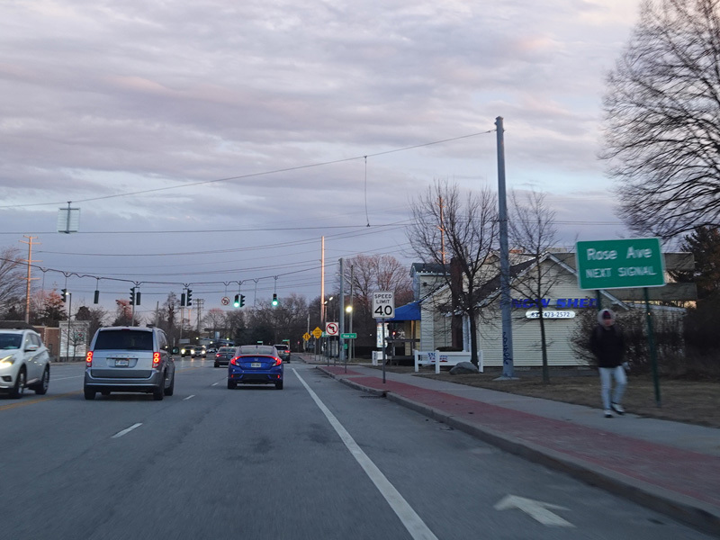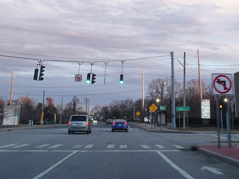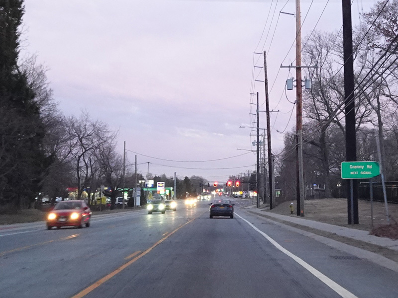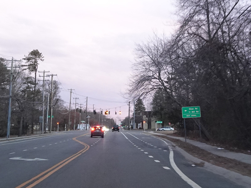 There is a traffic light at Skips Road, which extends a couple of blocks east to Mill Road.
