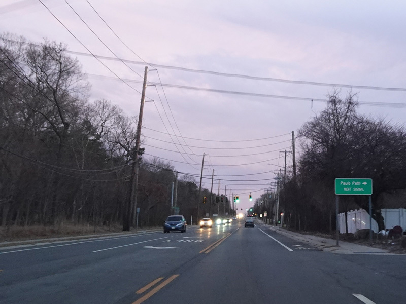 NY 112 continues south to Medford. There are traffic lights at Pauls Path and Granny Road.