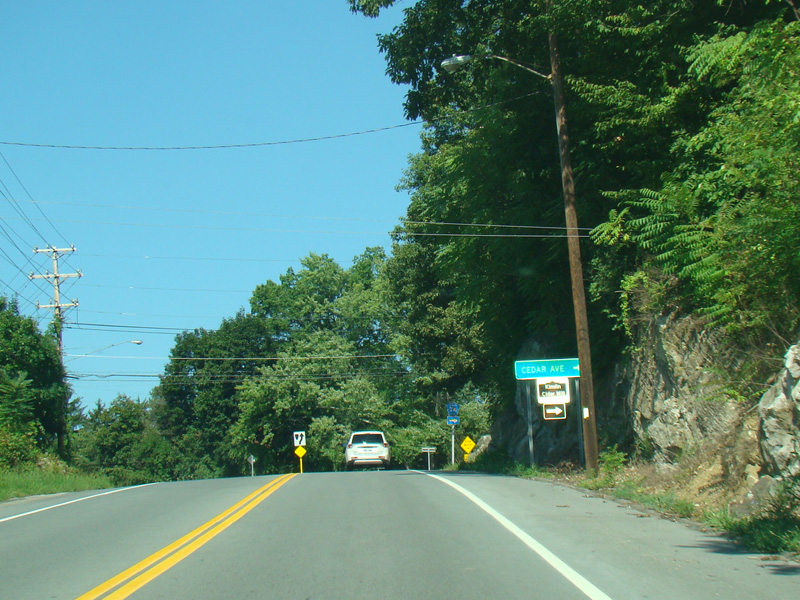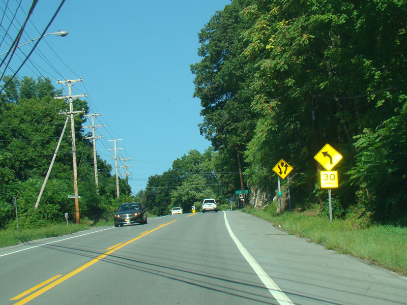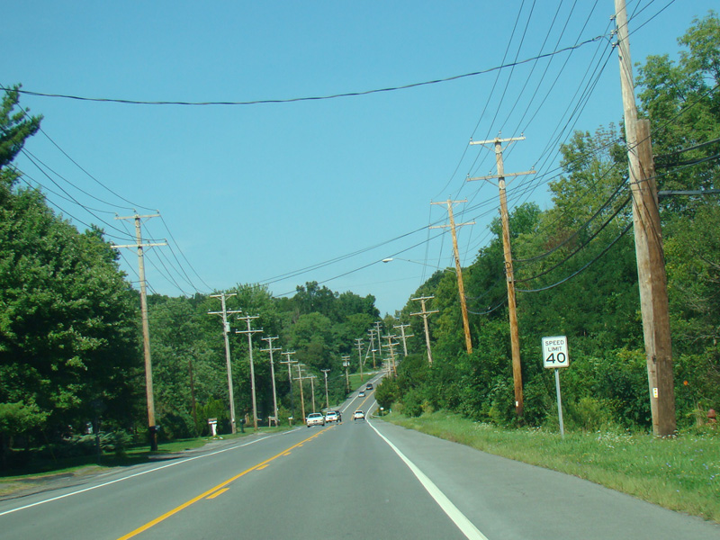 Spackenkill Road begins at New Hackensack Road (NY 376) and Vassar Road (CR 77) and runs west as a two-lane undivided road.