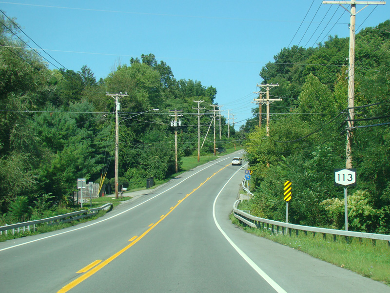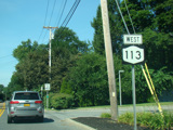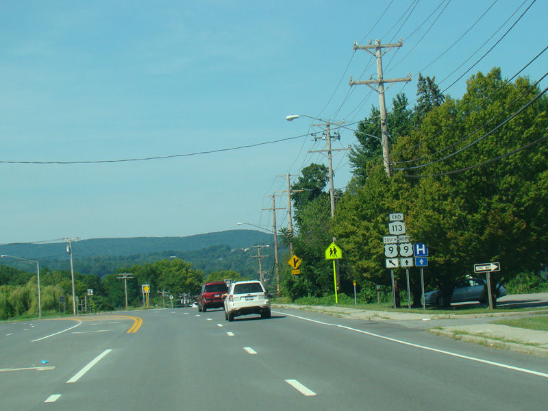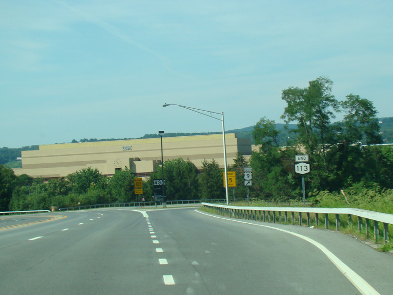Spackenkill Road widens to four lanes. There is a grade-separated interchange with South Road (US 9). NY 113 ends here. Spackenkill Road continues straight ahead as an unnumbered county route to end at IBM Road (CR 48).
