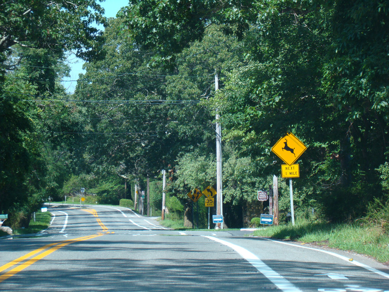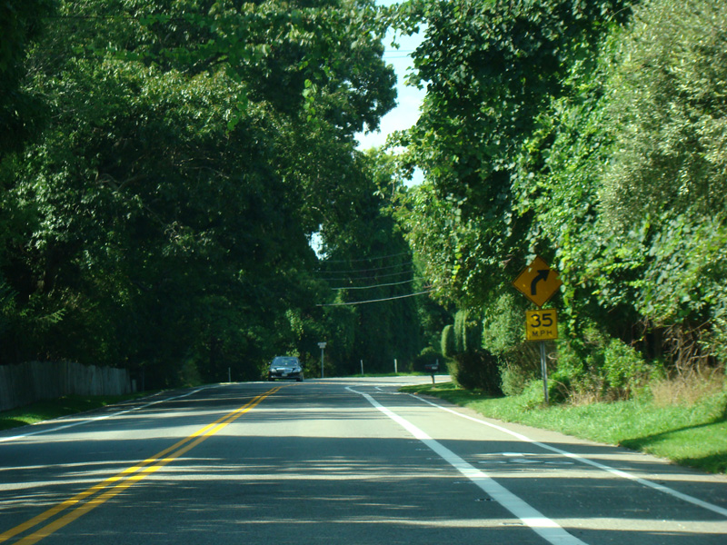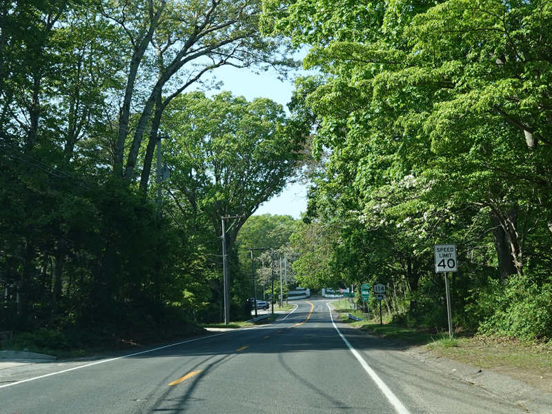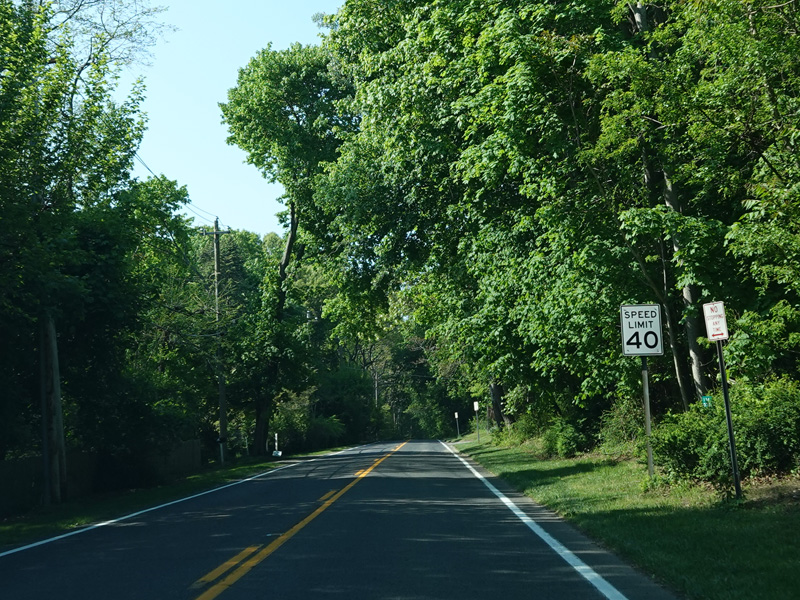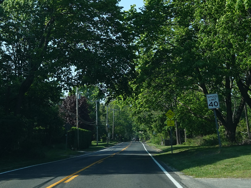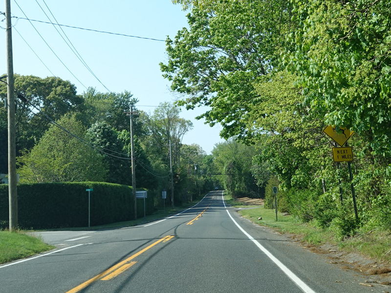 Welcome to Shelter Island! South Ferry Road runs north as a two-lane undivided road.