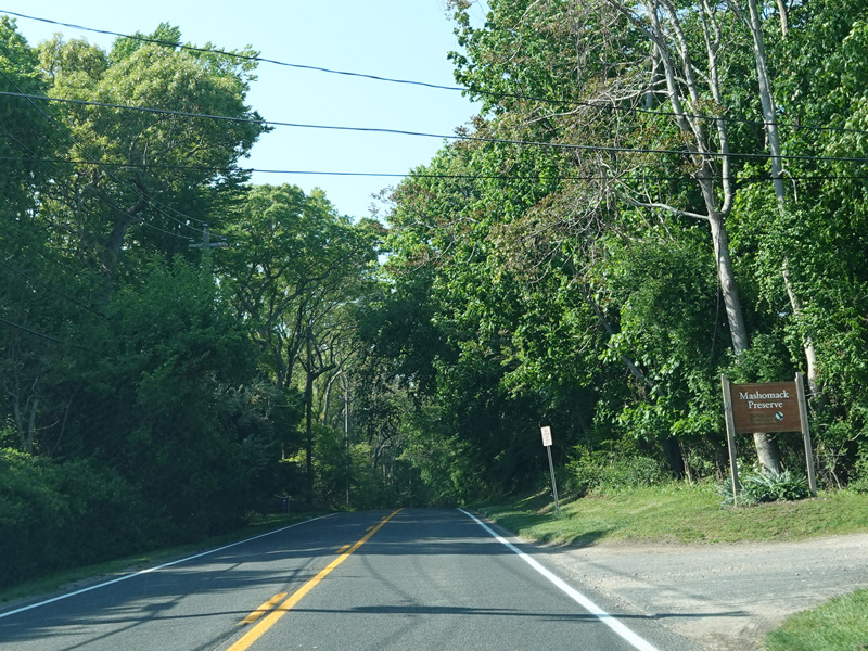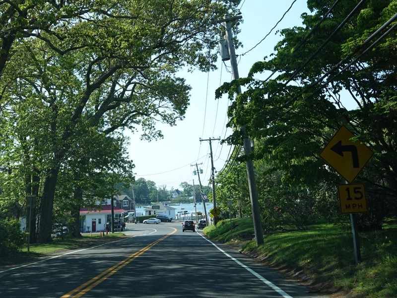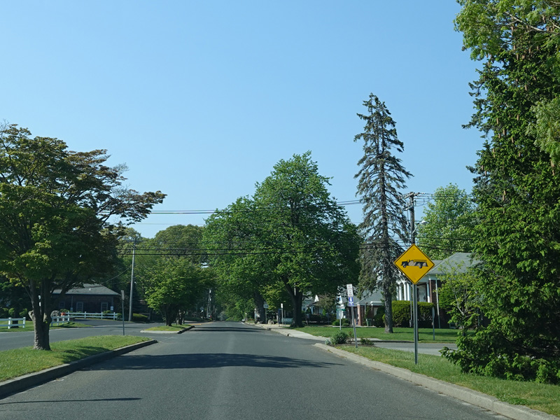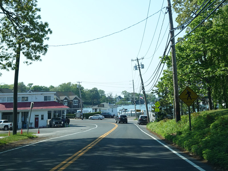 Welcome to Shelter Island Heights! North Ferry Road curves to the west, and there is a little bit of commercial development here.