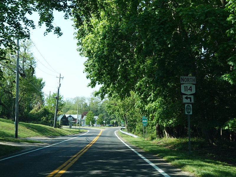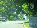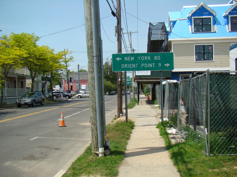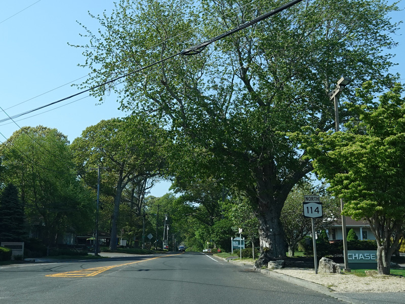 Welcome to Greenport! The section of NY 114 here is called Third Street. It runs north for one block to Front Street (NY 25), where it ends at a traffic light. Turn right to go east or left to go west.