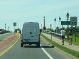 South Ferry Road continues north as a two-lane undivided road with bike lanes. There is one spot where there is a divider going around a curve.