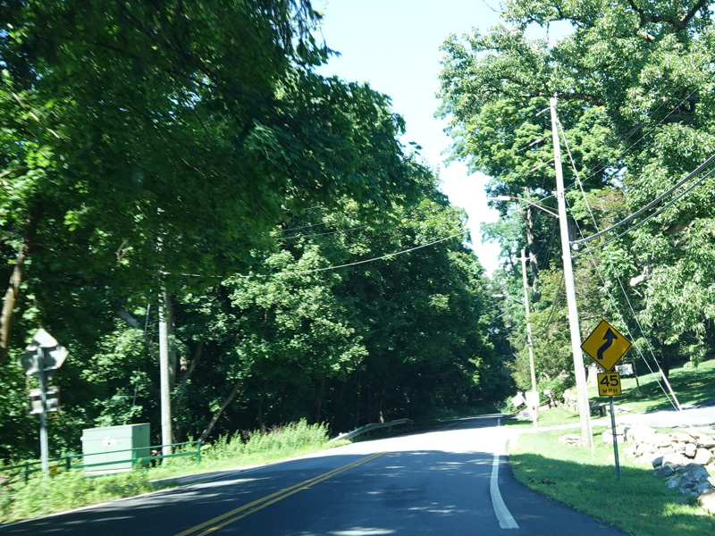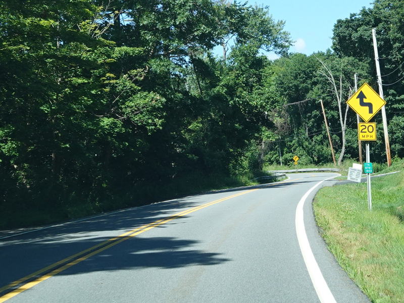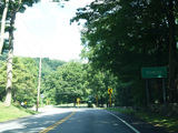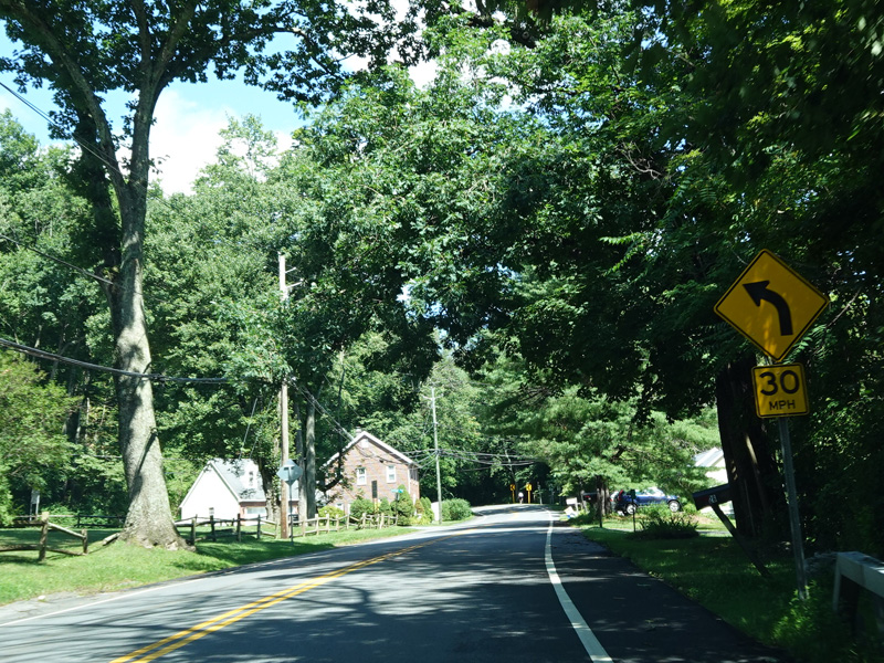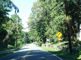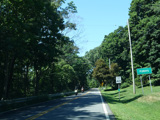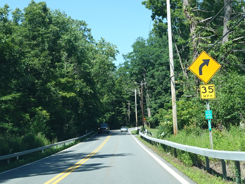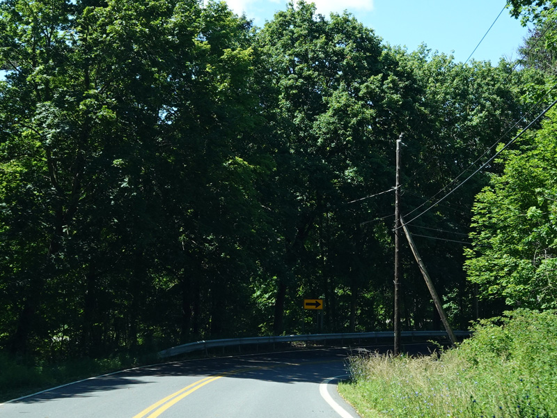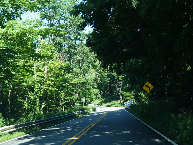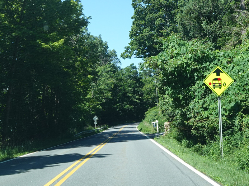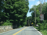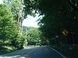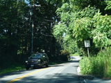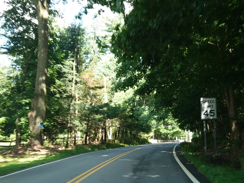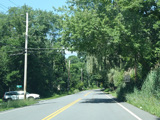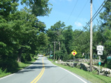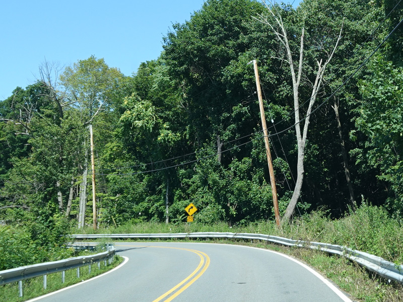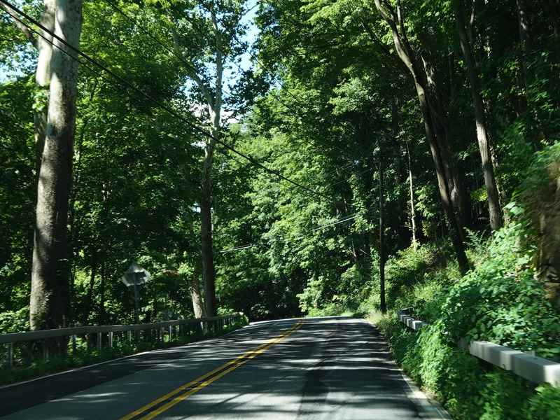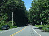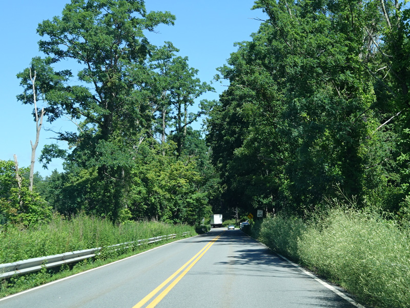 Titicus Road continues west as a two-lane undivided road. The Titicus Reservoir is on the left, although the view of the water is mostly blocked by the trees during the summer months.
