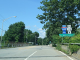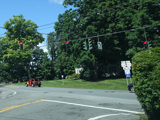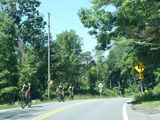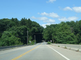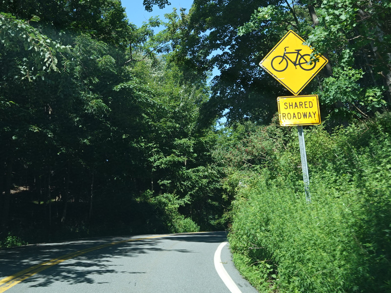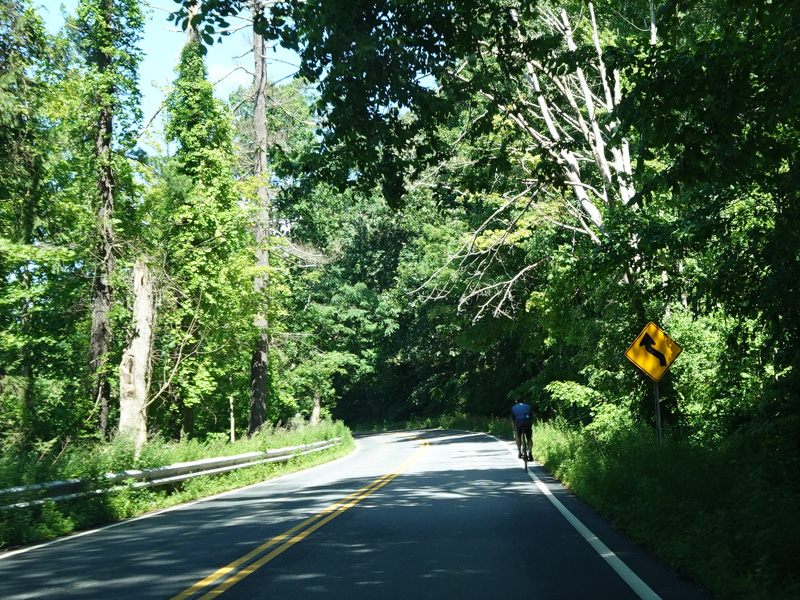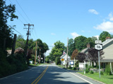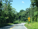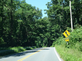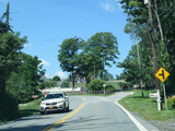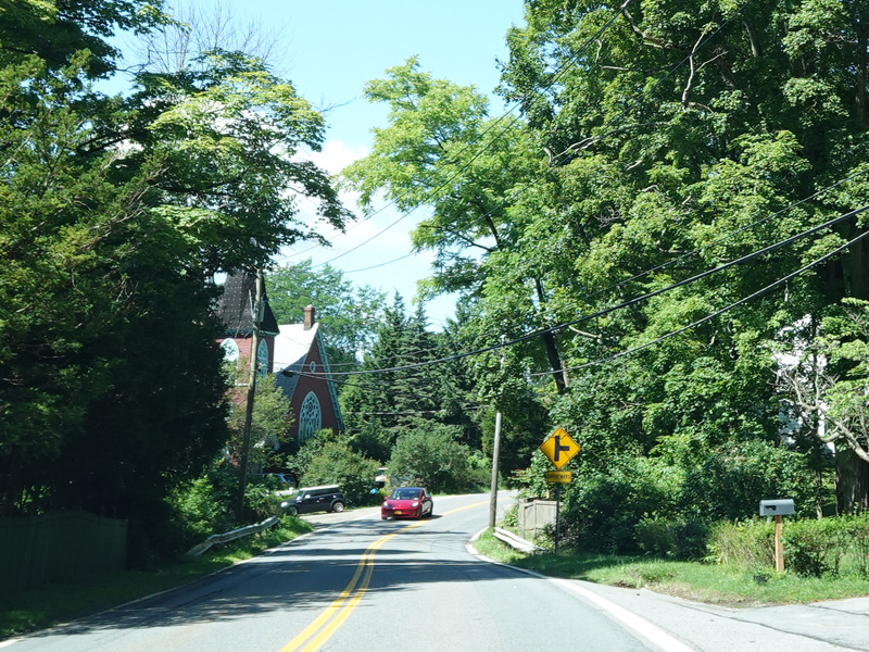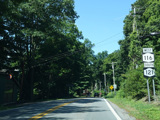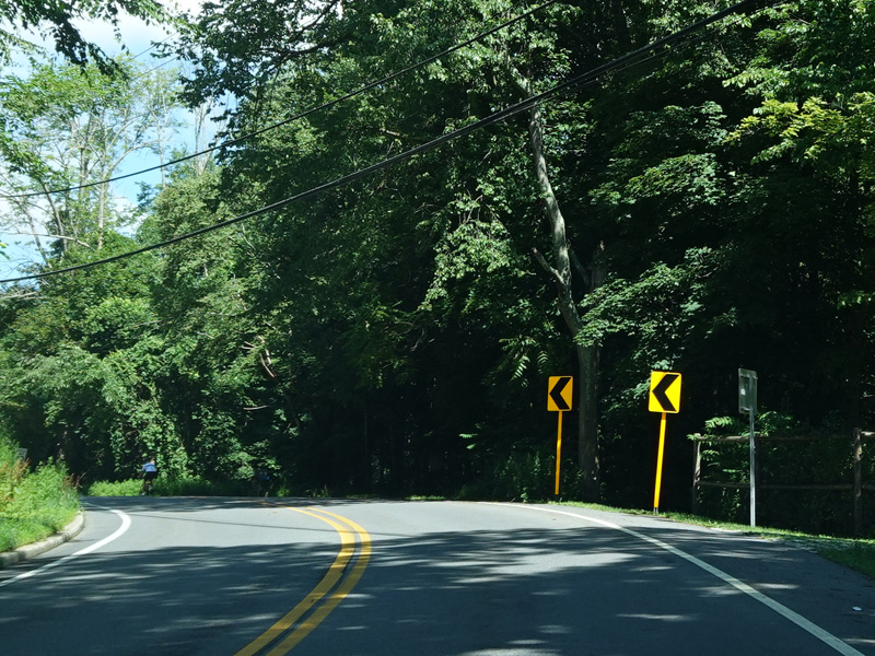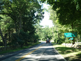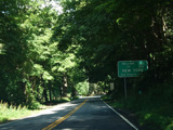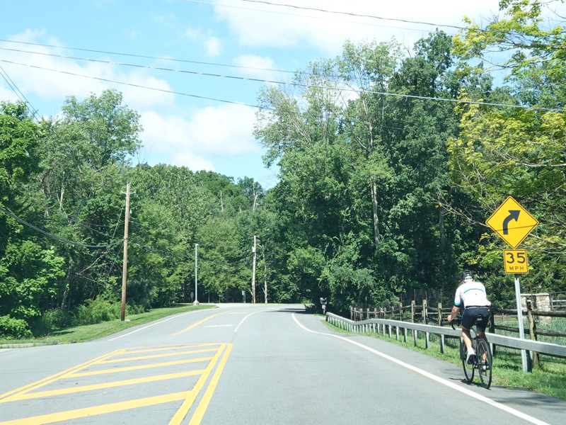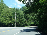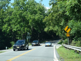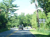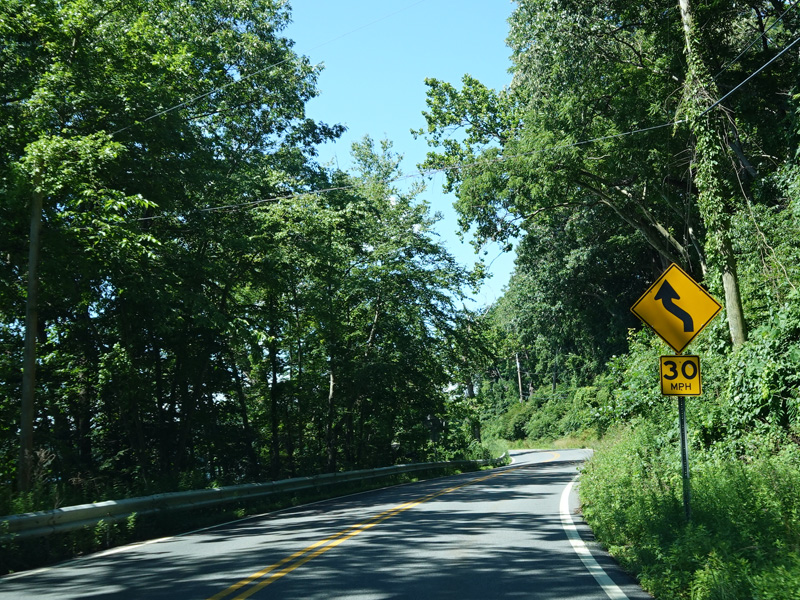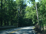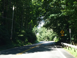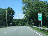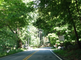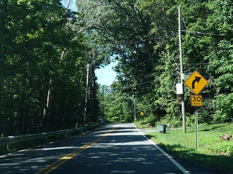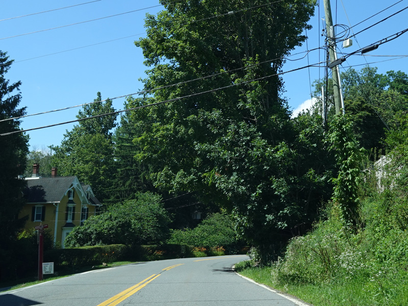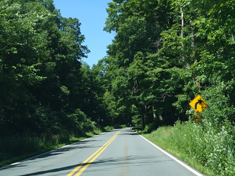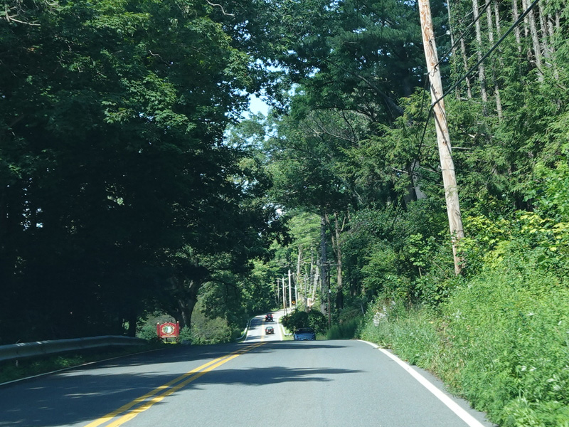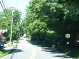 Titicus Road continues west as a two-lane undivided road. The Titicus Reservoir is on the left, although the view of the water is mostly blocked by the trees during the summer months.