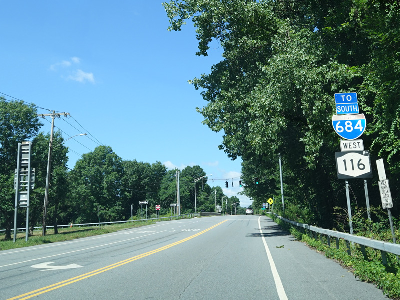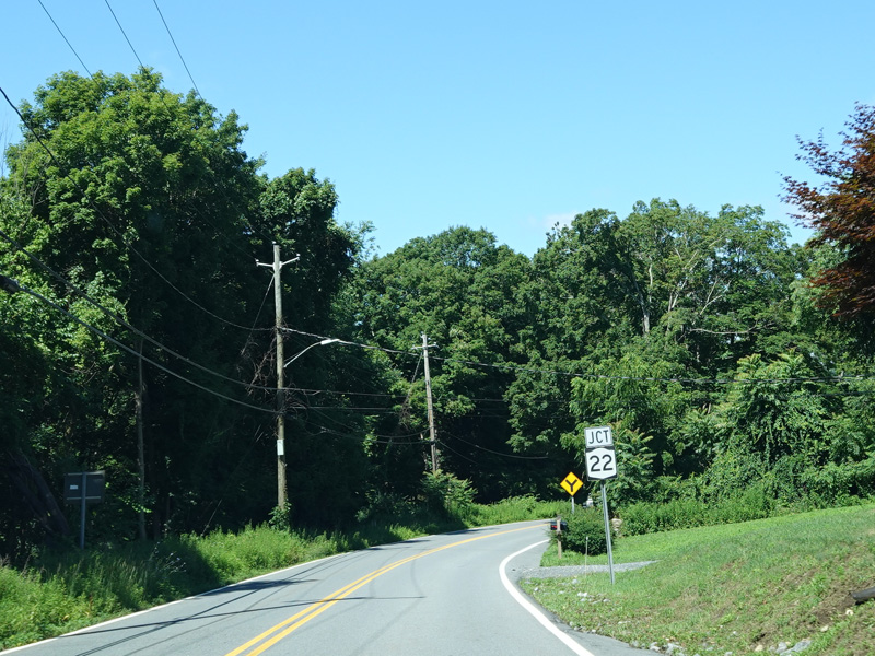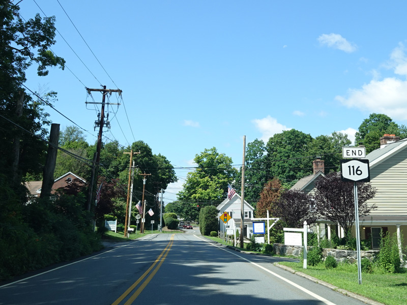 Titicus Road ends here at NY 22. Bear right to go north or left to go south. To continue on NY 116, bear left and then immediately turn right at the first traffic light onto Purdys Road.