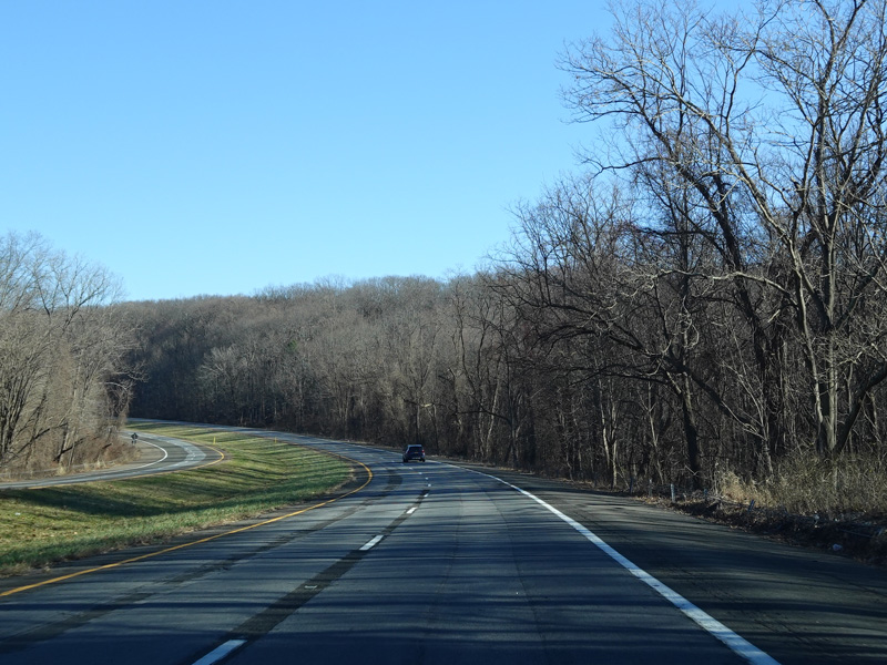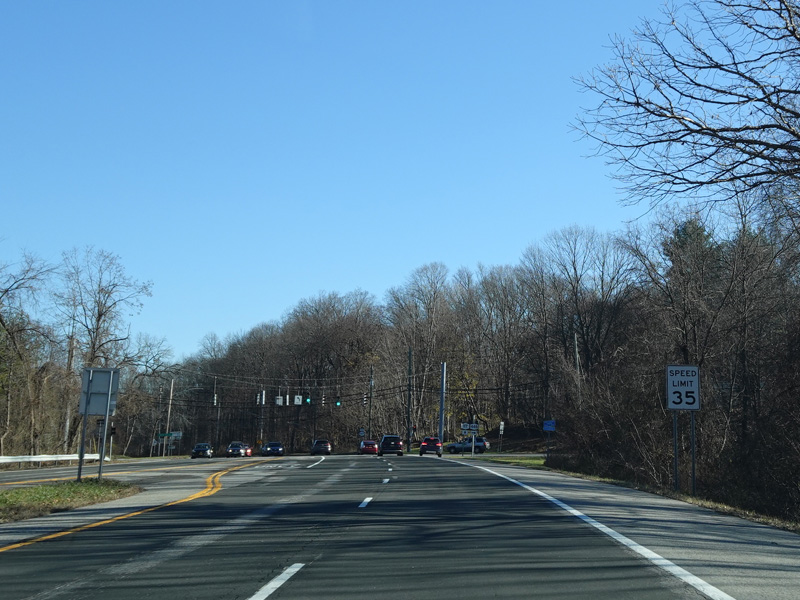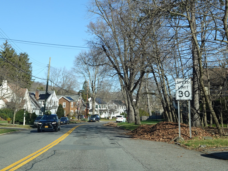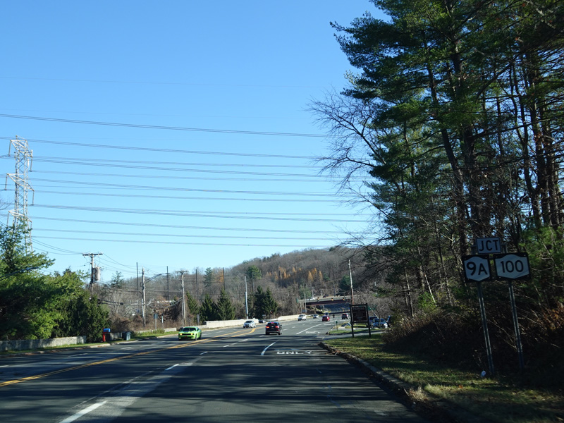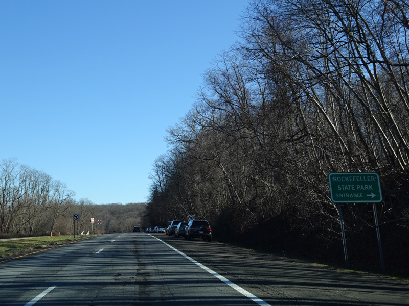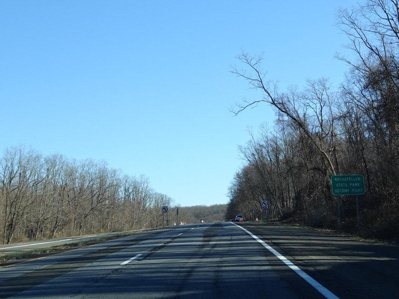 Phelps Way begins at Broadway (US 9) and runs northeast as a four-lane divided highway. There is a turnoff on the right for Rockefeller State Park Preserve.