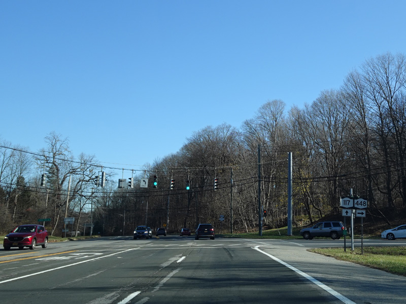 Phelps Way ends at a traffic light at Bedford Road. Continue straight ahead to stay on NY 117. NY 448 begins to the right.