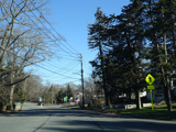 Skipping about a mile, Manville Road ends here at a stop sign at Bedford Road. Turn left to continue north on NY 117 or right to go south on NY 141.