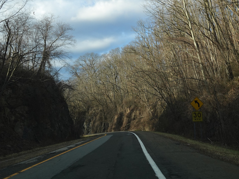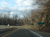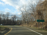 The ramp for the exit at the end of Phelps Way leads to a stop sign at Broadway (US 9). Turn right to go north or left to go south.