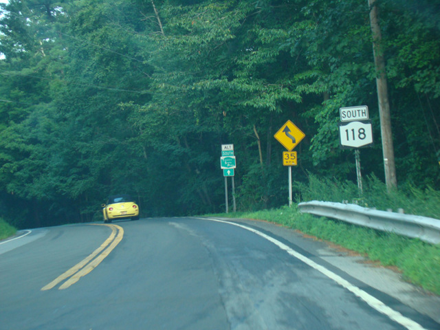 NY 118 is a north/south route in the northern area of Westchester County. It begins at Somerstown Road (NY 100) in Yorktown Heights. The first section is known as Saw Mill River Road. It runs west for about a mile to the eastern terminus of NY 129 and then turns to the north. After a few miles, it intersects the eastern end of Crompond Road (US 202/NY 35). NY 118 is multiplexed with US 202 and NY 35 for about a mile, curving to the east, until the end of Saw Mill River Road. At this point, NY 35 splits off and runs east along Amawalk Road. NY 118 and US 202 turn north onto Tomahawk Street and runs along the west side of the Amawalk Reservoir. After a couple of miles, US 202 splits off and turns east onto Lincolndale Road. NY 118 continues north along Tomahawk Street to the Westchester-Putnam county line, where it curves to the west for one block and then ends at US 6.