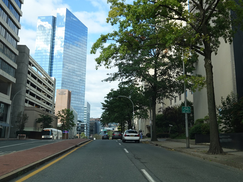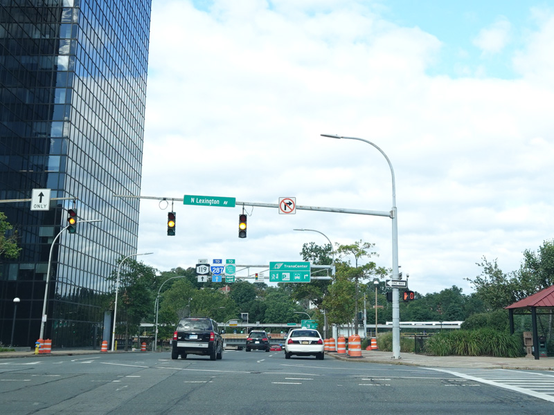 Hamilton Avenue begins at North Broadway (NY 22) and runs west through White Plains as a four-lane one-way street. There are traffic lights at E.J. Conroy Drive, Church Street, Renaissance Square, Cottage Place, Dr. Martin Luther King Jr. Boulevard, North Lexington Avenue, and Ferris Avenue.