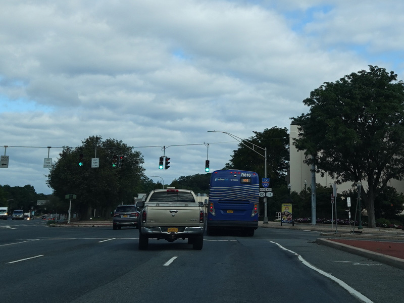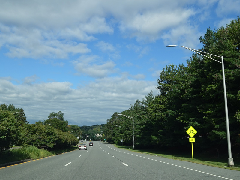 Main Street becomes a divided highway and changes names to become White Plains Road. There is an interchange with the Cross Westchester Expressway (I-287).