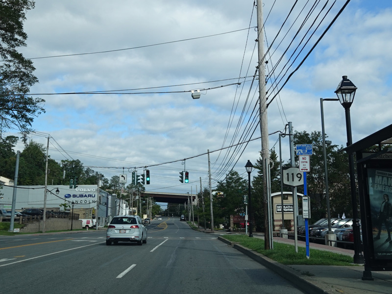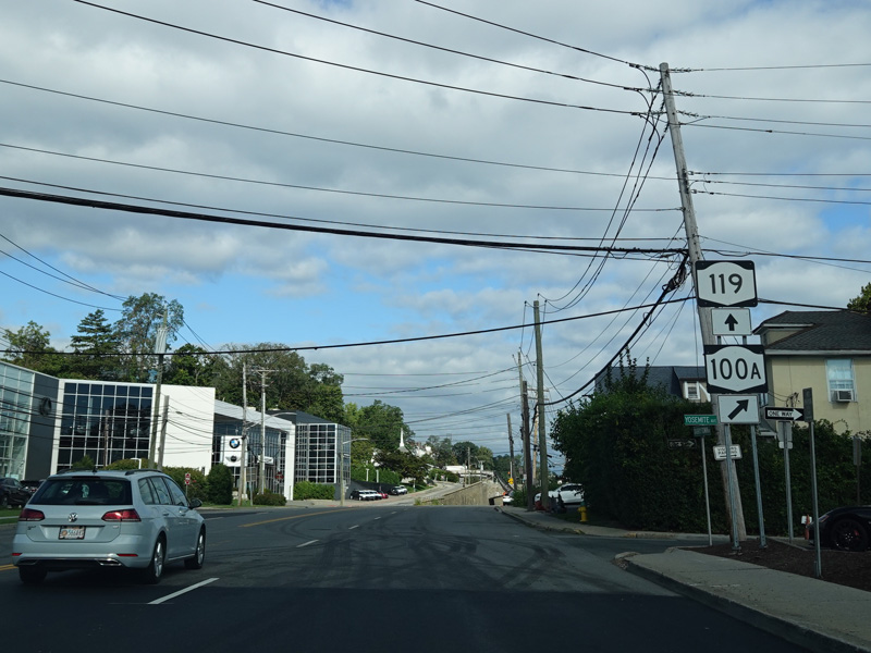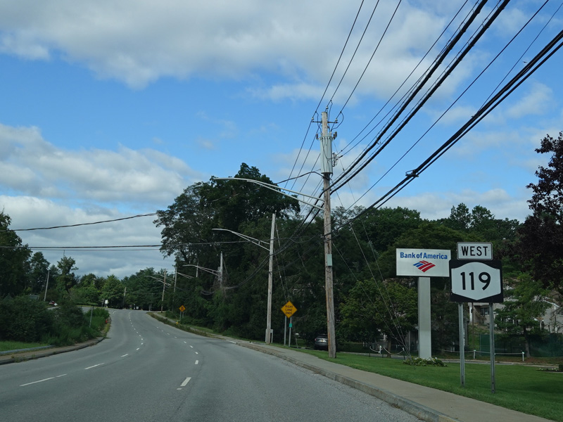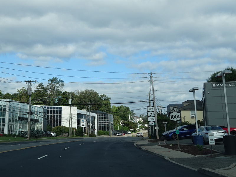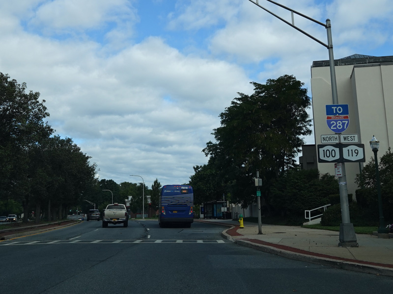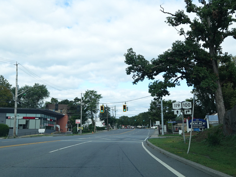 NY 100 splits off to the right onto Hillside Avenue at the second traffic light. Continue straight ahead on Tarrytown Road to stay on NY 119.