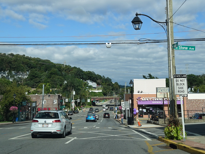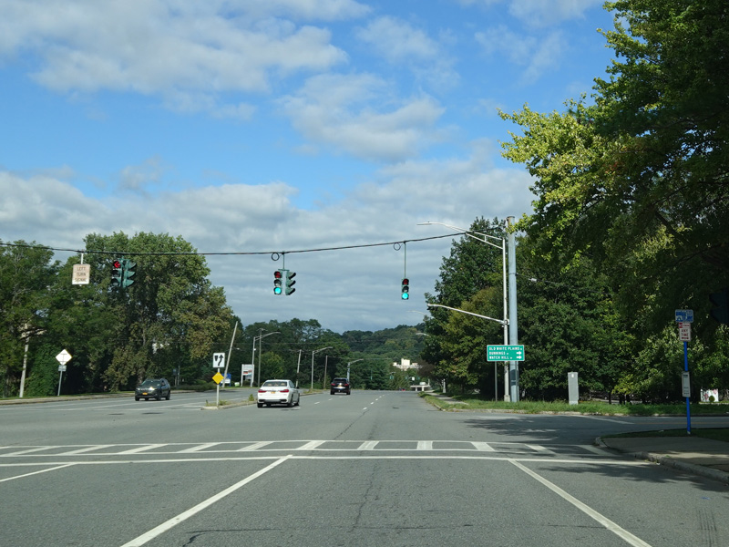 Dobbs Ferry Road (NY 100B) begins on the left at a traffic light.