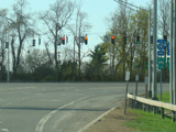 Genesee Street ends here at this traffic light. To the right, NY 12 is multiplexed with NY 5 east as the North-South Arterial Highway. Turn left for Seneca Turnpike (NY 5) west and Clinton Road (NY 12B), which begins one block west of here.