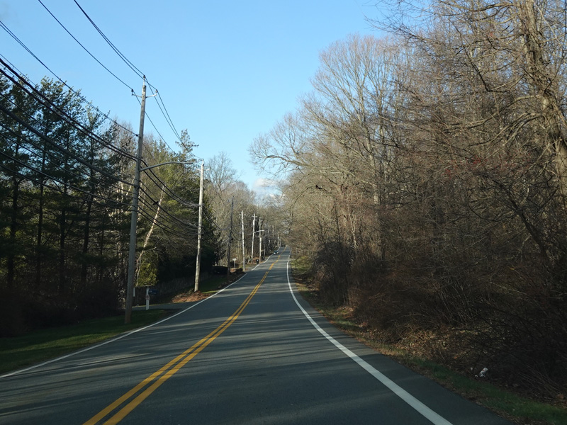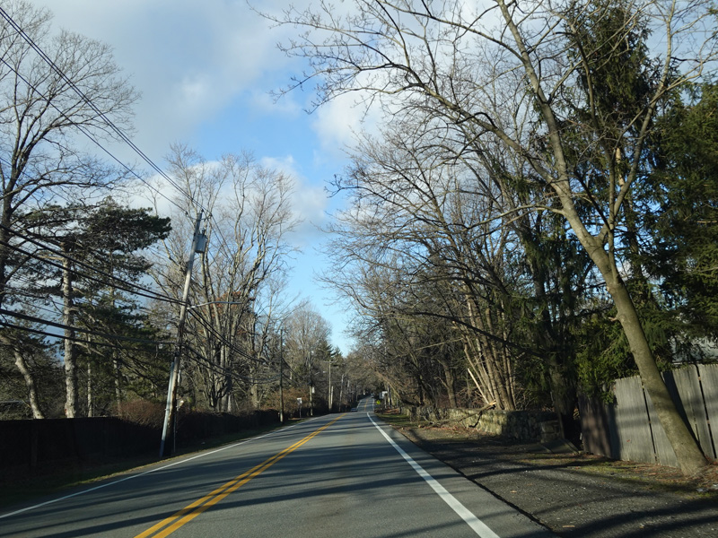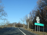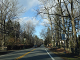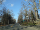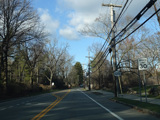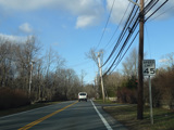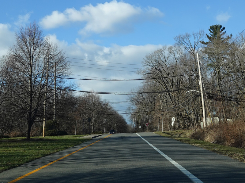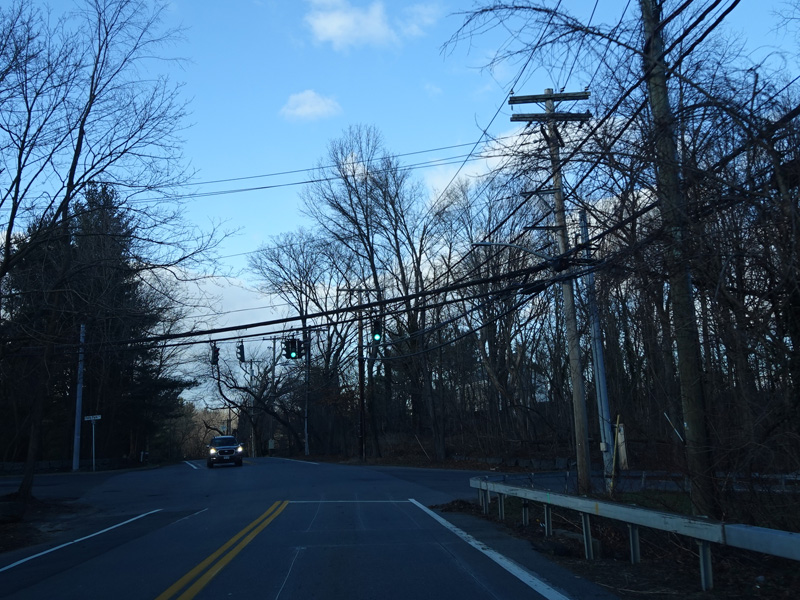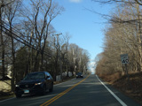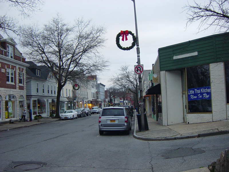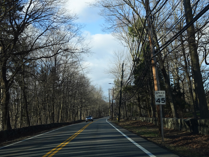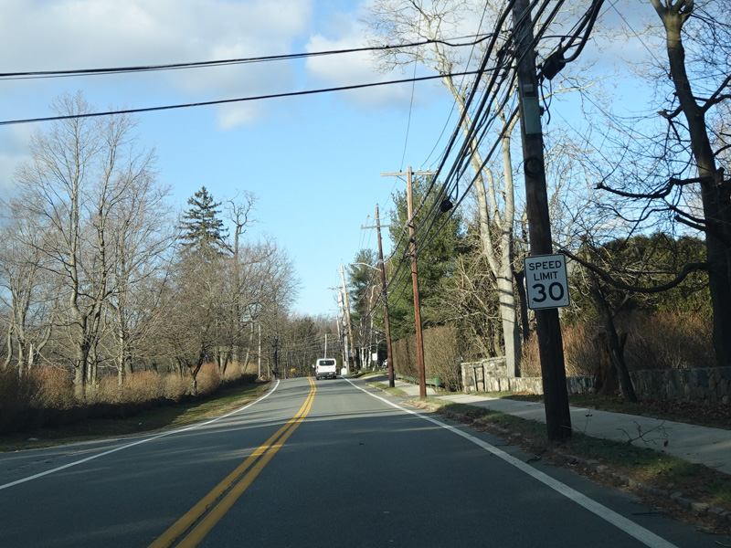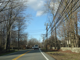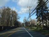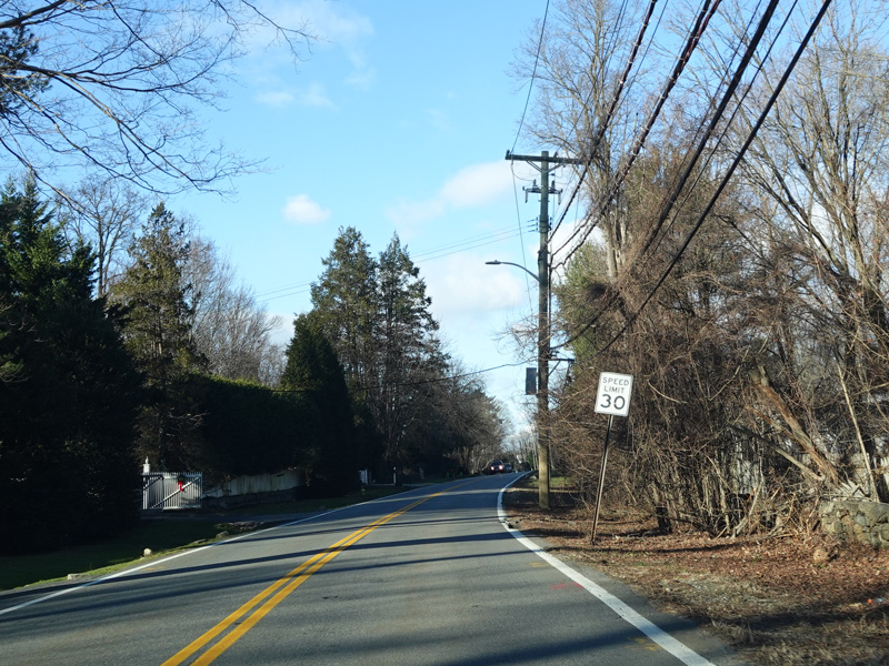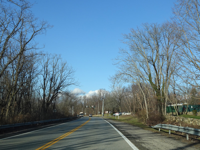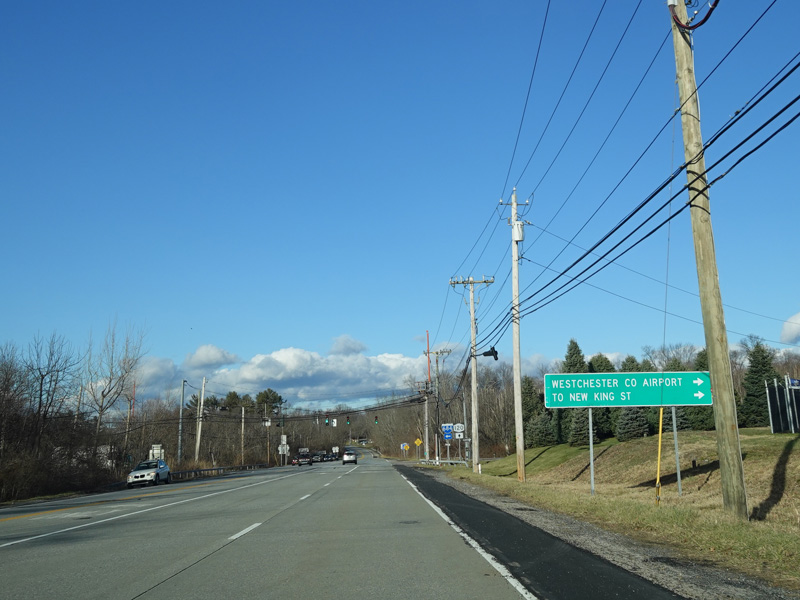 Purchase Street begins at US 1 in Rye and runs north as a two-lane undivided road. There are a couple of stop signs at and traffic light. There is no yellow line down the middle, which is unusual for a state route.