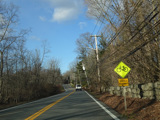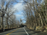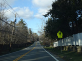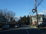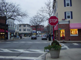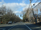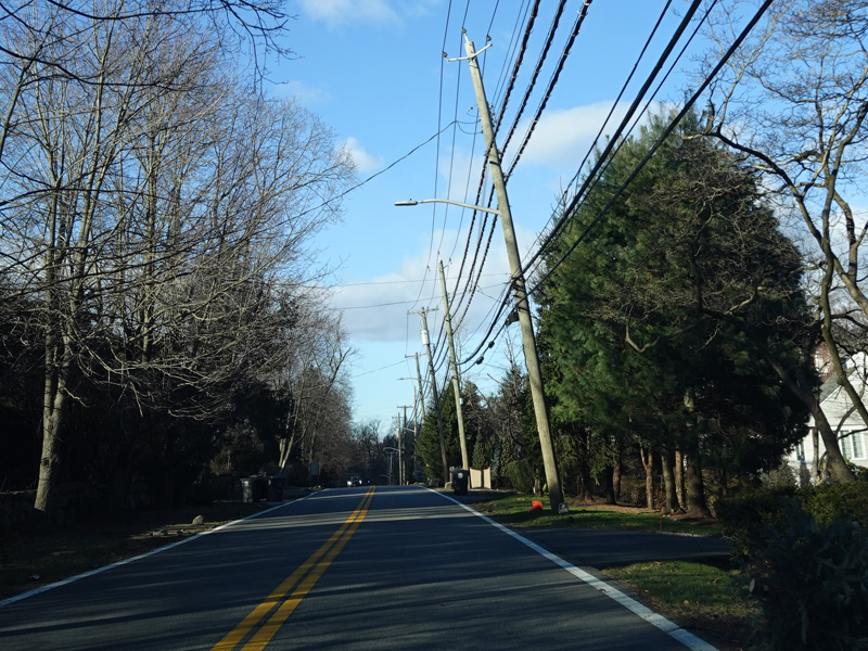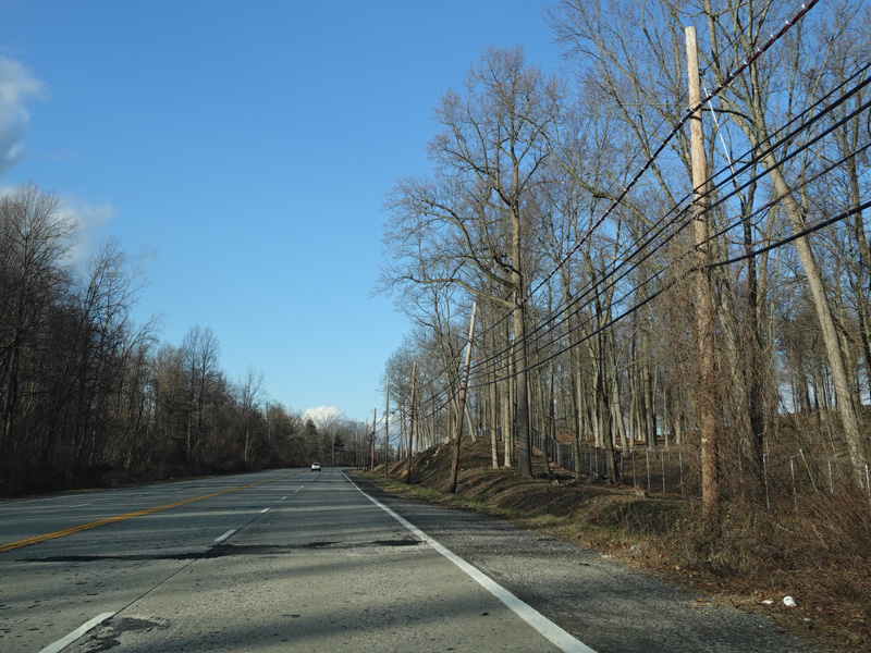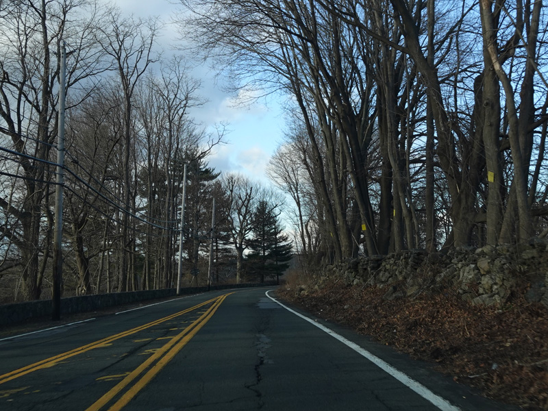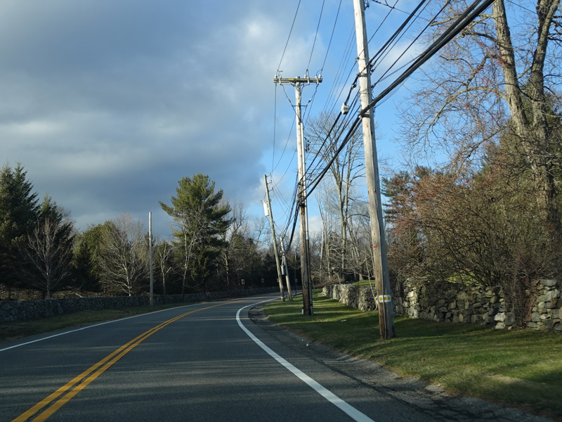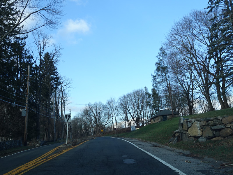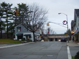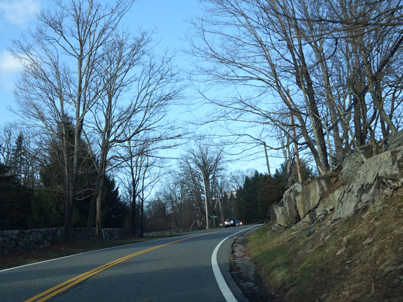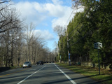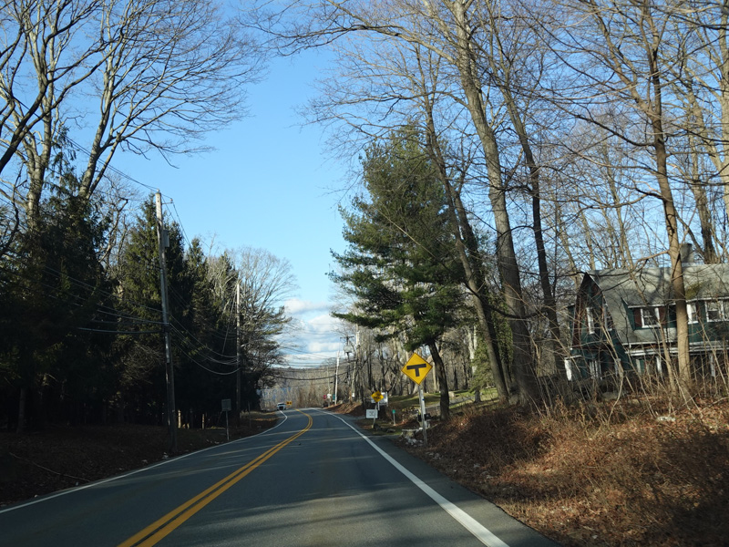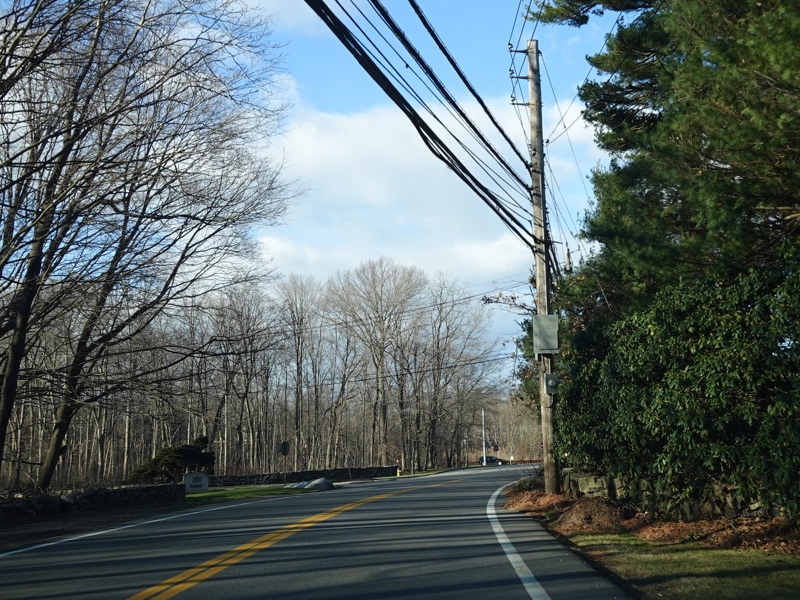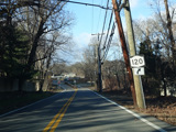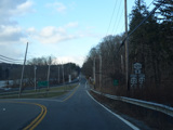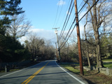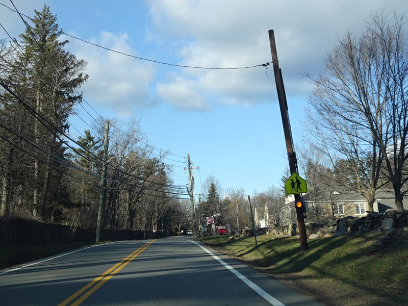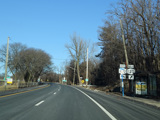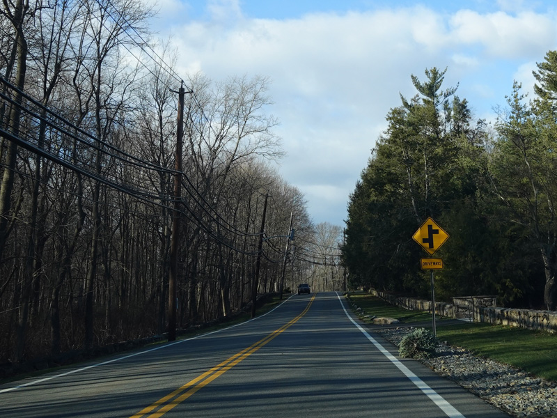 Purchase Street begins at US 1 in Rye and runs north as a two-lane undivided road. There are a couple of stop signs at and traffic light. There is no yellow line down the middle, which is unusual for a state route.