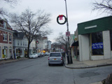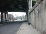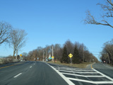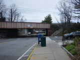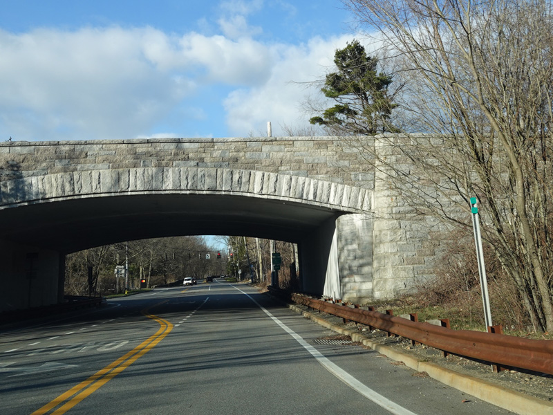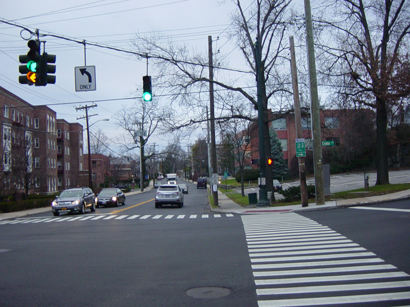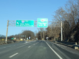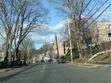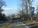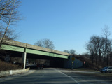 Purchase Street is interrupted at the Cross Westchester Expressway (I-287). All vehicles must bear right to merge into Westchester Avenue, the service road of the expressway, which is designated CR 62 west of here.