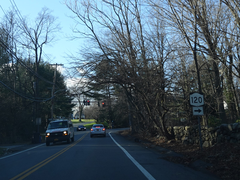 Bear right here for Purchase Street to continue north on NY 120. Continue straight ahead on Westchester Avenue to head back south.