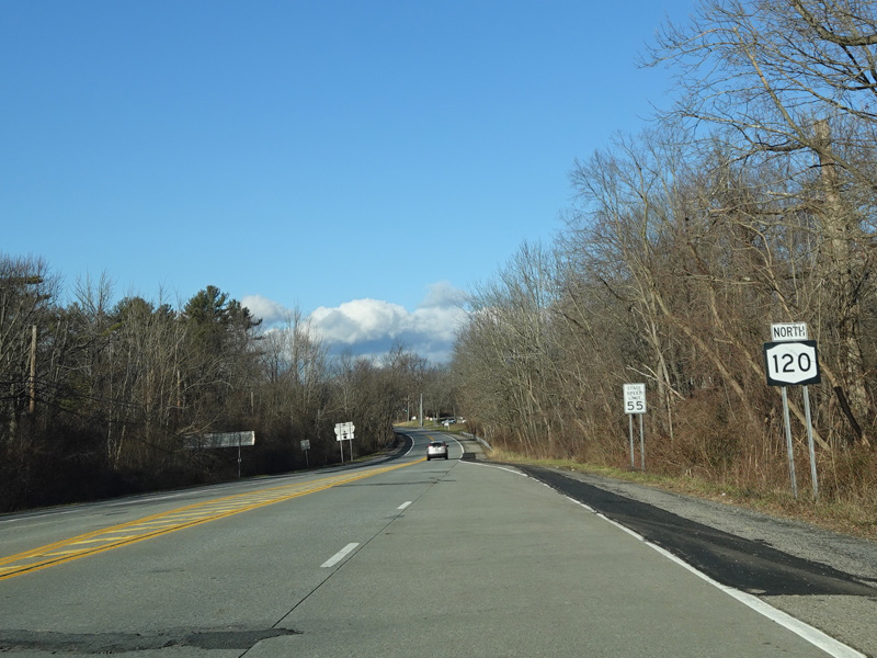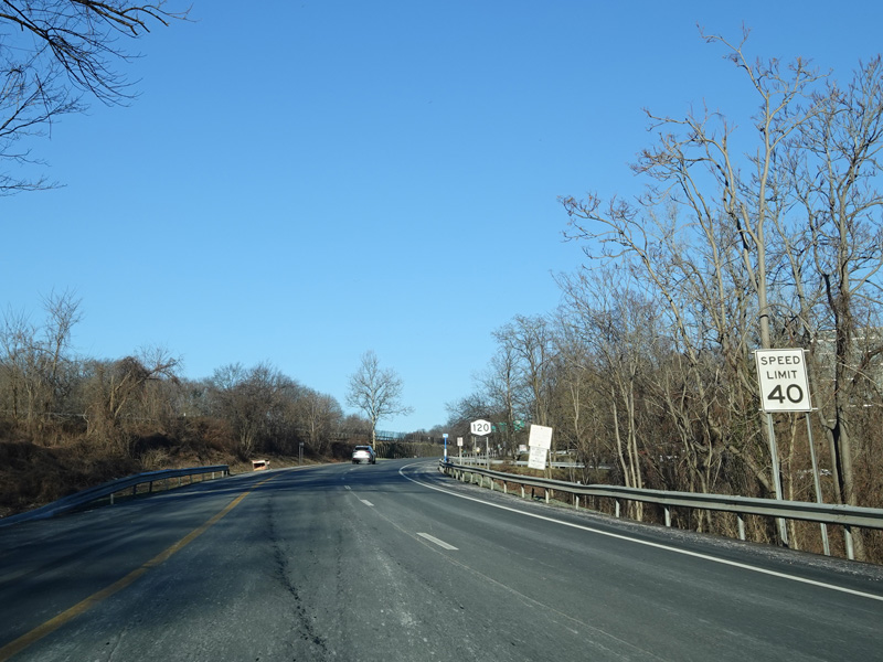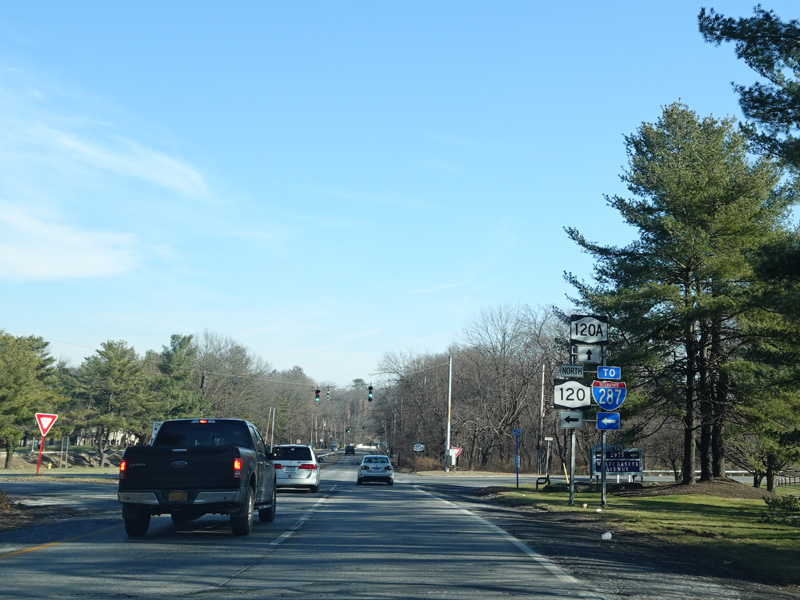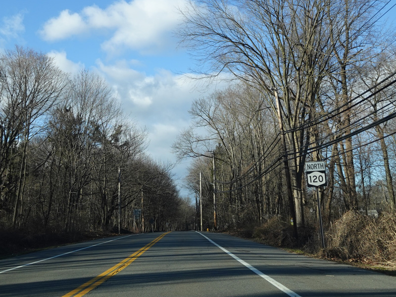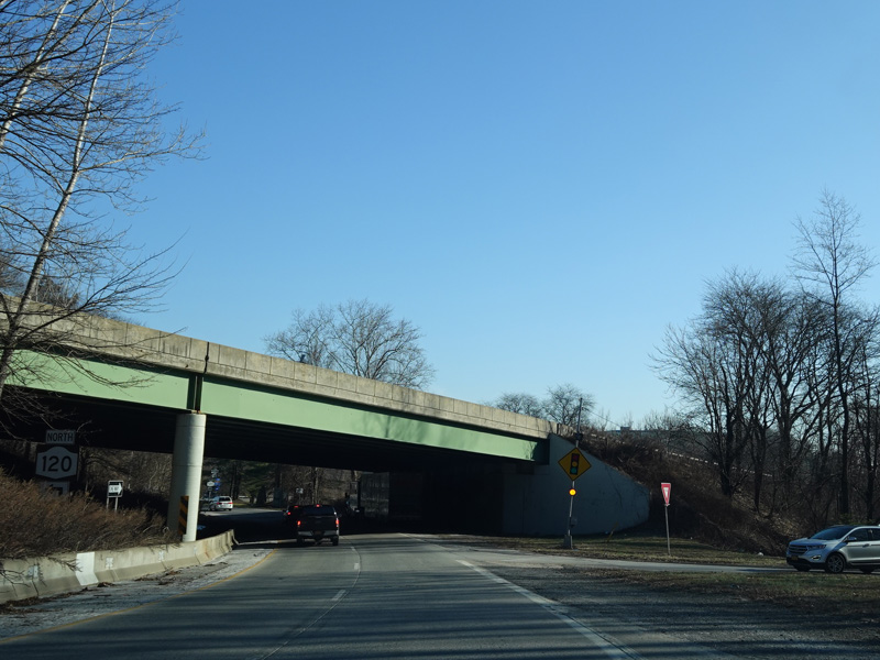 There is a traffic light as Westchester Avenue splits off from the Cross Westchester Expressway (I-287) and the two sides join back together to form a single road. Turn left onto the westbound side of Westchester Avenue to continue north on NY 120. NY 120A begins straight ahead.