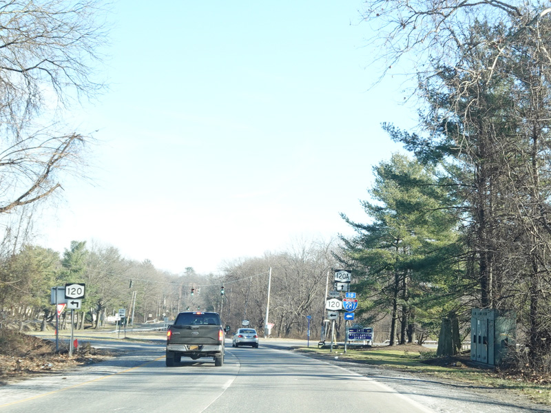 Purchase Street ends at a traffic light at King Street. Continue straight ahead to stay on NY 120. Turn right to go south on NY 120A.